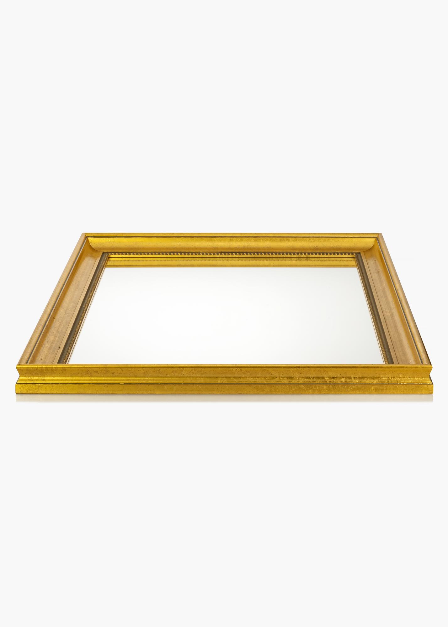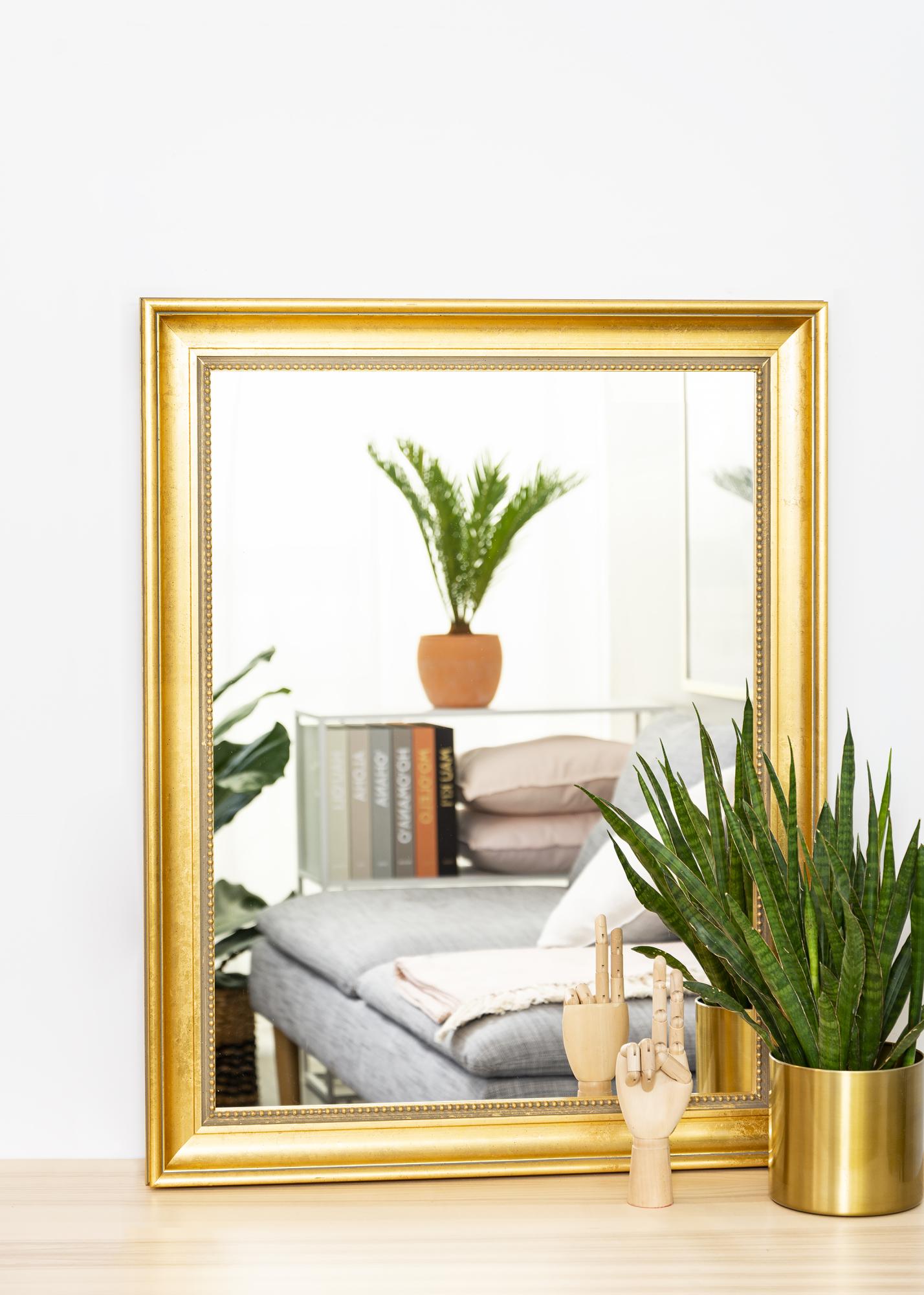 Faites l'acquisition d'un beau miroir pour apporter une touche de luxe à votre entrée, votre salon ou votre salle de bain. Ce miroir élégant est disponible en plusieurs tailles différentes, ce qui vous permettra d'en trouver facilement un qui répondra à vos besoins. L'encadrement du miroir est de design classique avec un cadre large et un motif de perles discret le long du verre. Le bois est issu de la sylviculture durable et est peint dans une belle teinte dorée.