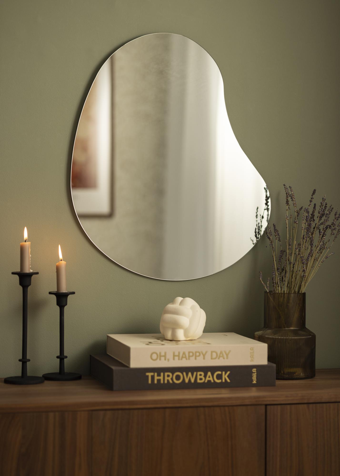 Avec des dimensions de 50x60 cm, ce miroir est parfaitement dimensionné pour s'adapter à la plupart des espaces, que ce soit dans le hall, la chambre ou la salle de bains. Sa forme unique crée une illusion d'espace et de lumière, donnant à chaque pièce une sensation de plus grandeur et d'invité.