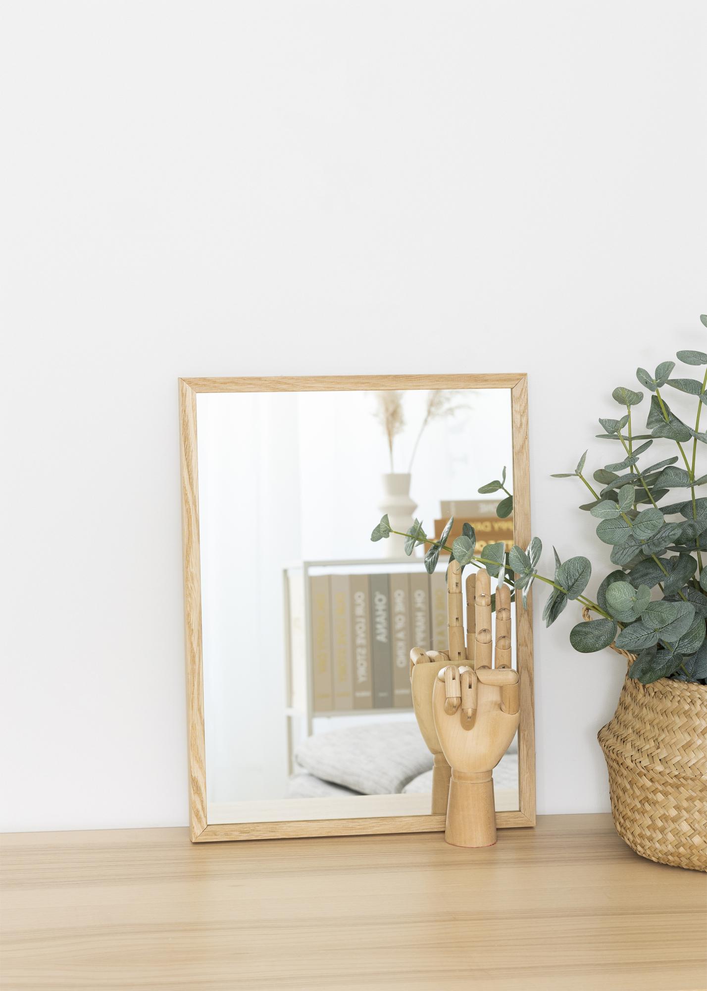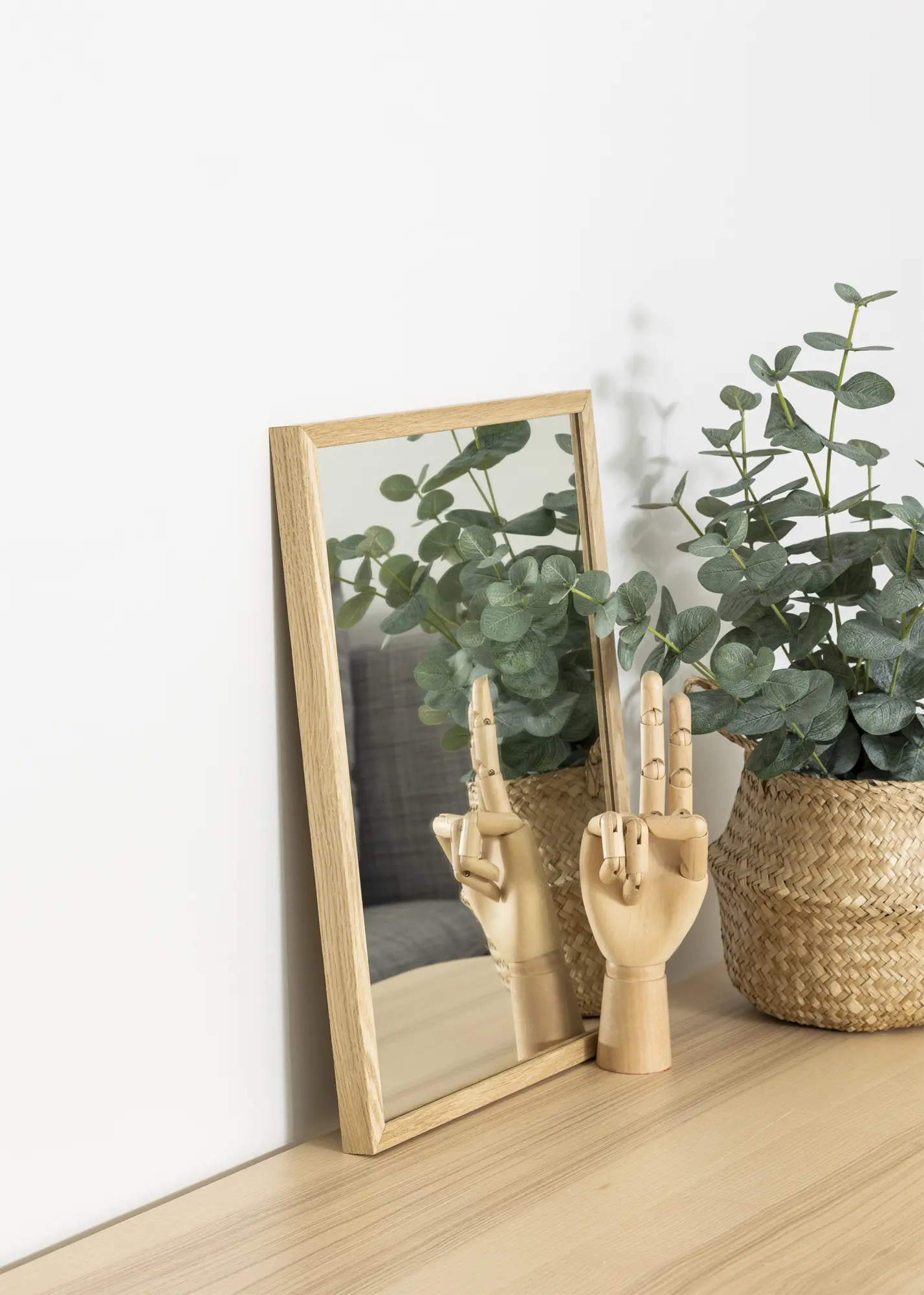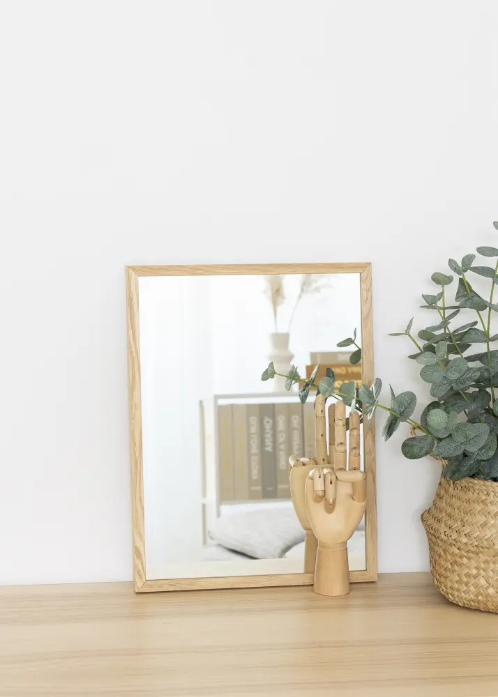 Voici un miroir mural doté d'un fin encadrement en bois qui conviendra aussi bien dans les intérieurs modernes que les intérieurs bohèmes. Le miroir est un exemple de design scandinave sous son meilleur jour, avec un verre miroir incolore et un cadre en bois clair avec un profil droit, le tout apporte une impression fraîche et lumineuse.