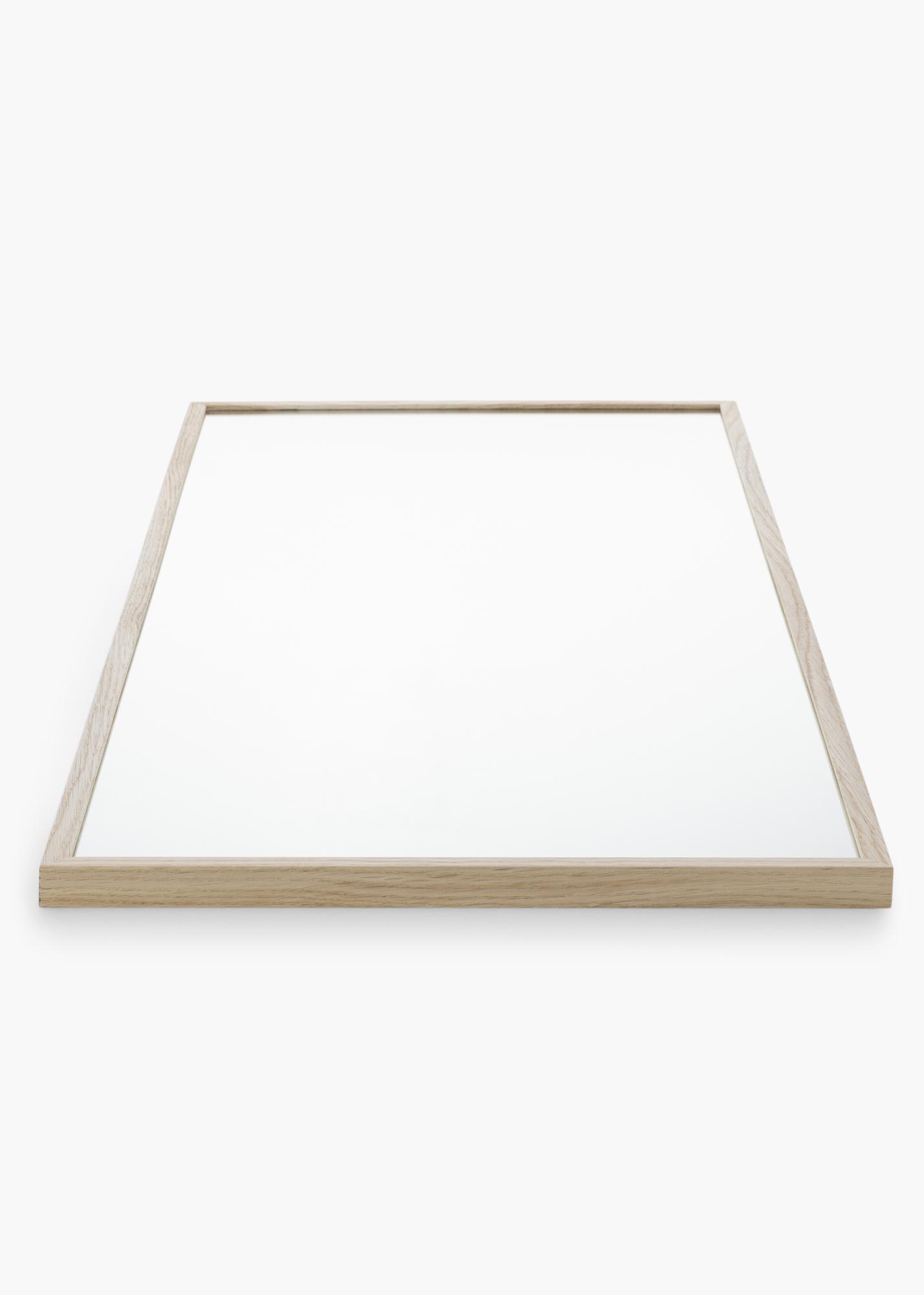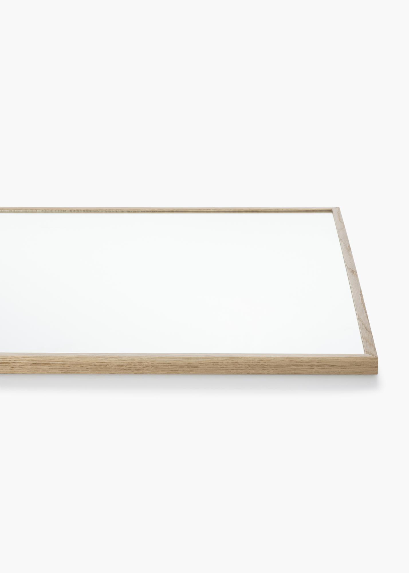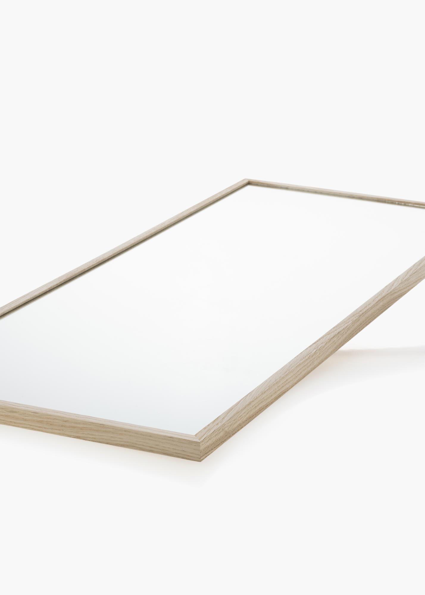 Dies ist ein Wandspiegel mit dünnem Holzrahmen, der sowohl in moderne als auch in mehr bohemische Wohnungen hervorragend passt. Der Spiegel ist eine Demonstration skandinavischen Designs in seiner besten Form, mit ungefärbtem Spiegelglas und einem hellen Holzrahmen mit geradem Profil, die zusammen eine helle und frische Erscheinung bieten.