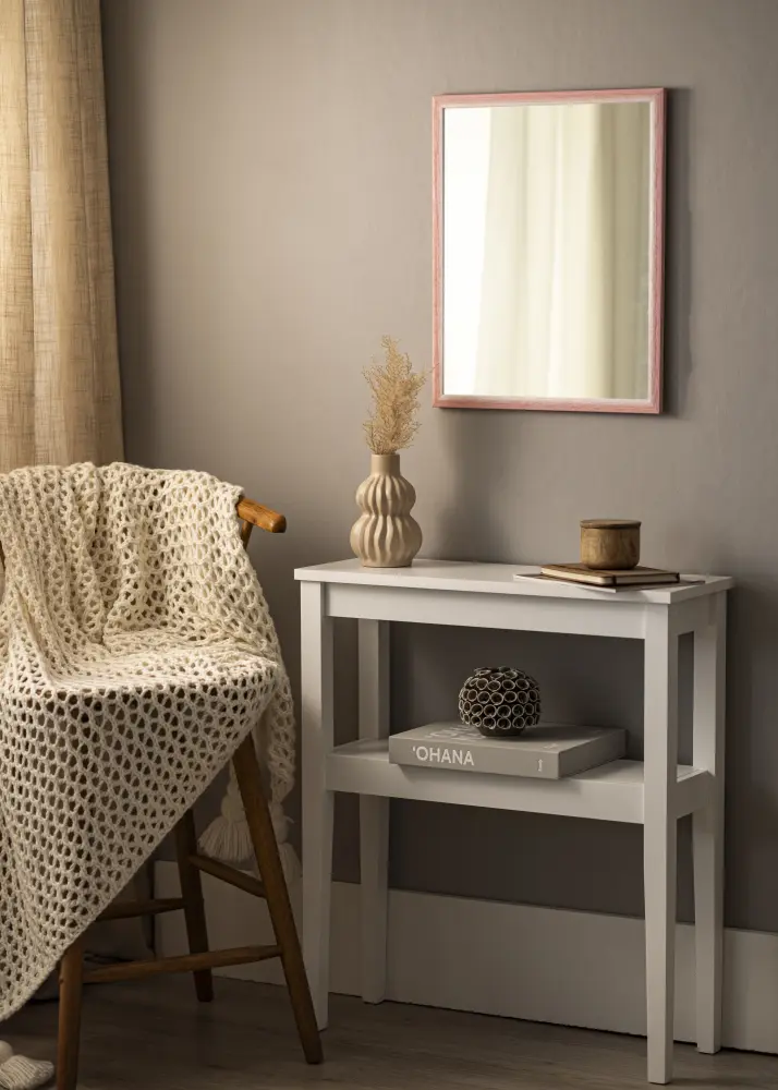 Le miroir Cornwall Rose est un miroir élégant et épuré fabriqué par nos soins avec une grande attention. Ce miroir est parfait pour ceux qui souhaitent quelque chose d'unique et de personnel, car il peut être personnalisé selon vos spécifications. Avec sa belle couleur rose et sa transition subtile d'une teinte claire, presque blanche à une nuance pastel rose atténuée, il devient un élément accrocheur dans n'importe quelle pièce.