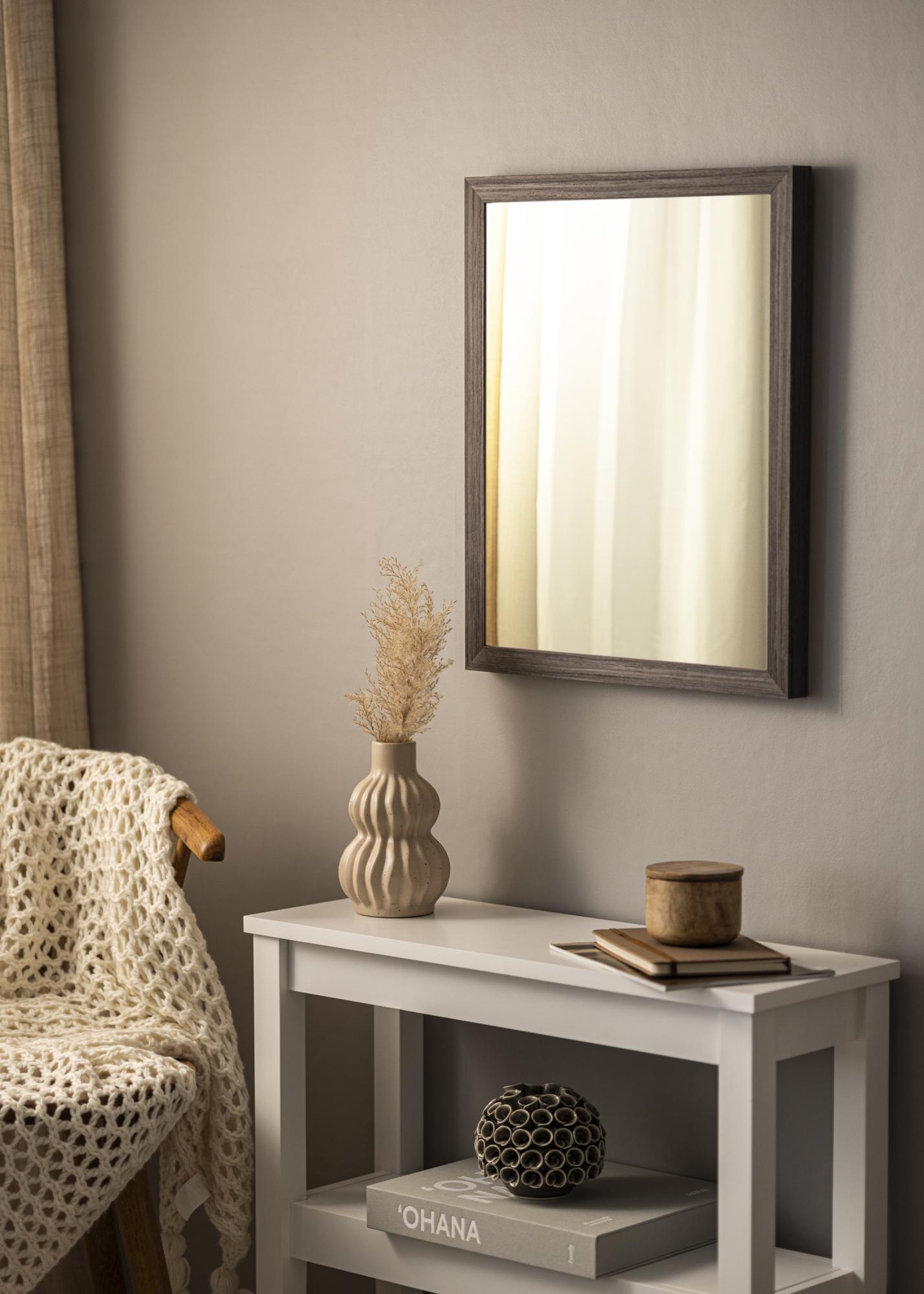 Miroir Cotswold Gris est un miroir sur mesure fabriqué par nous pour s'adapter précisément à vos besoins. Avec son cadre de 28 mm de large et une profondeur de 33 mm, ce miroir offre un parfait équilibre entre fonctionnalité et esthétique. Le cadre est en pin avec une finition bois foncé et une structure grainée apparente, ce qui renforce son apparence naturelle et donne à la pièce une sensation chaleureuse et accueillante.