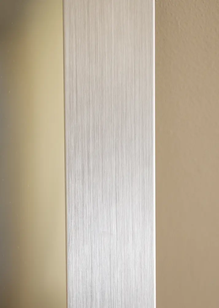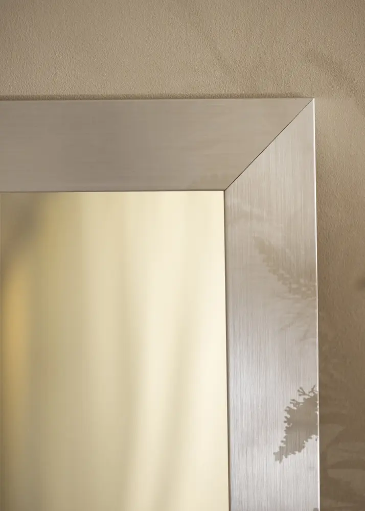 Le cadre du miroir Dover Lisse Argent mesure 69 mm de large et a une profondeur de 22 mm, ce qui confère au miroir une sensation robuste et solide. Fabriqué en bois d'ayous, il allie durabilité et esthétique, ce qui en fait un ajout durable à votre maison. La texture subtile de la finition argent brossé crée une sensation élégante et moderne qui peut facilement s'adapter à différents styles d'intérieur.