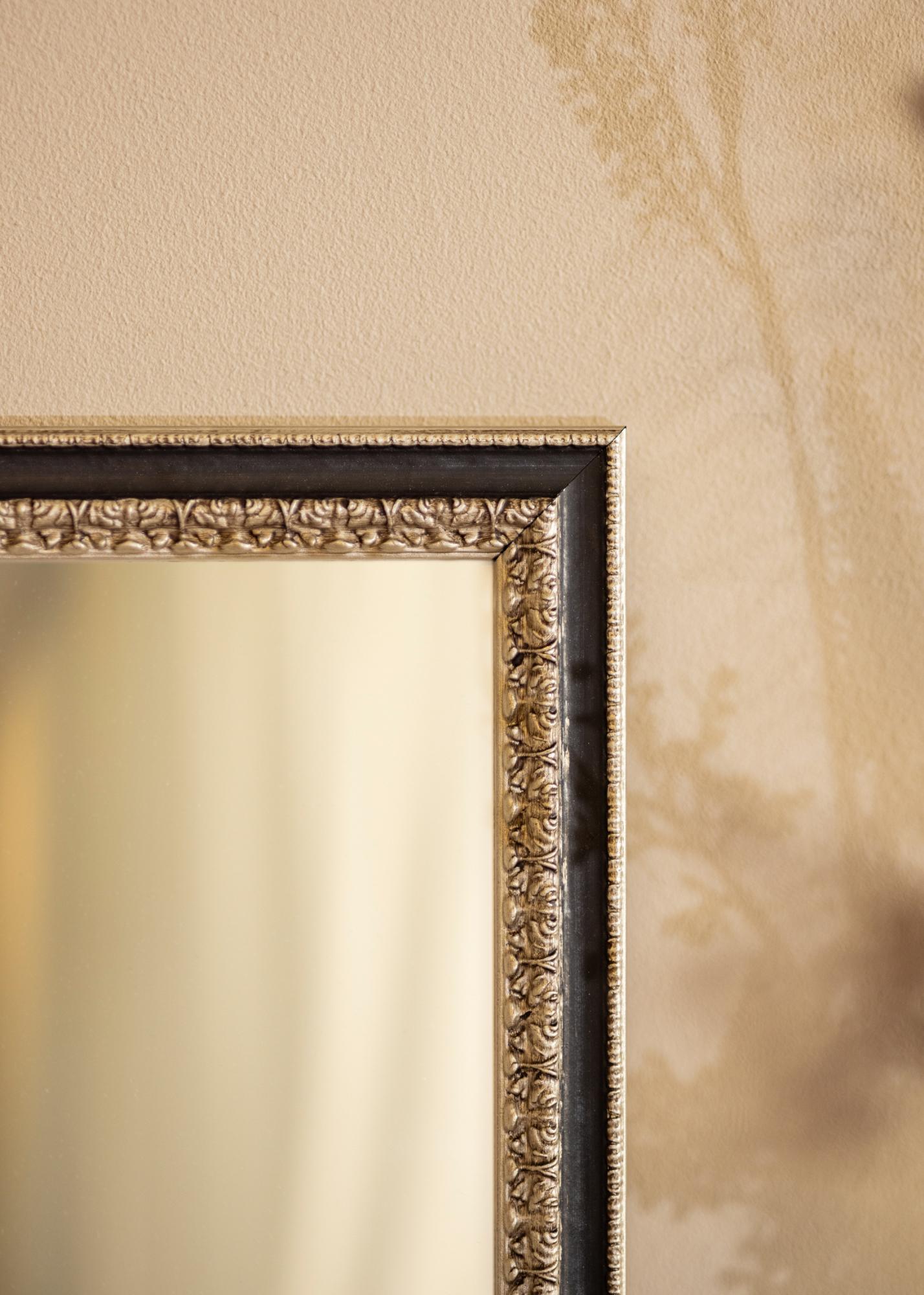 Miroir Drottningholm Argent II est un miroir élégant et stylé fabriqué selon vos dimensions. Avec sa belle couleur argentée et son bord noir, il devient un élément accrocheur dans n'importe quelle pièce. La baguette de cadre de 25 mm de large donne au miroir un encadrement distinct, tandis que la profondeur de 17 mm crée une sensation de profondeur et de dimension.