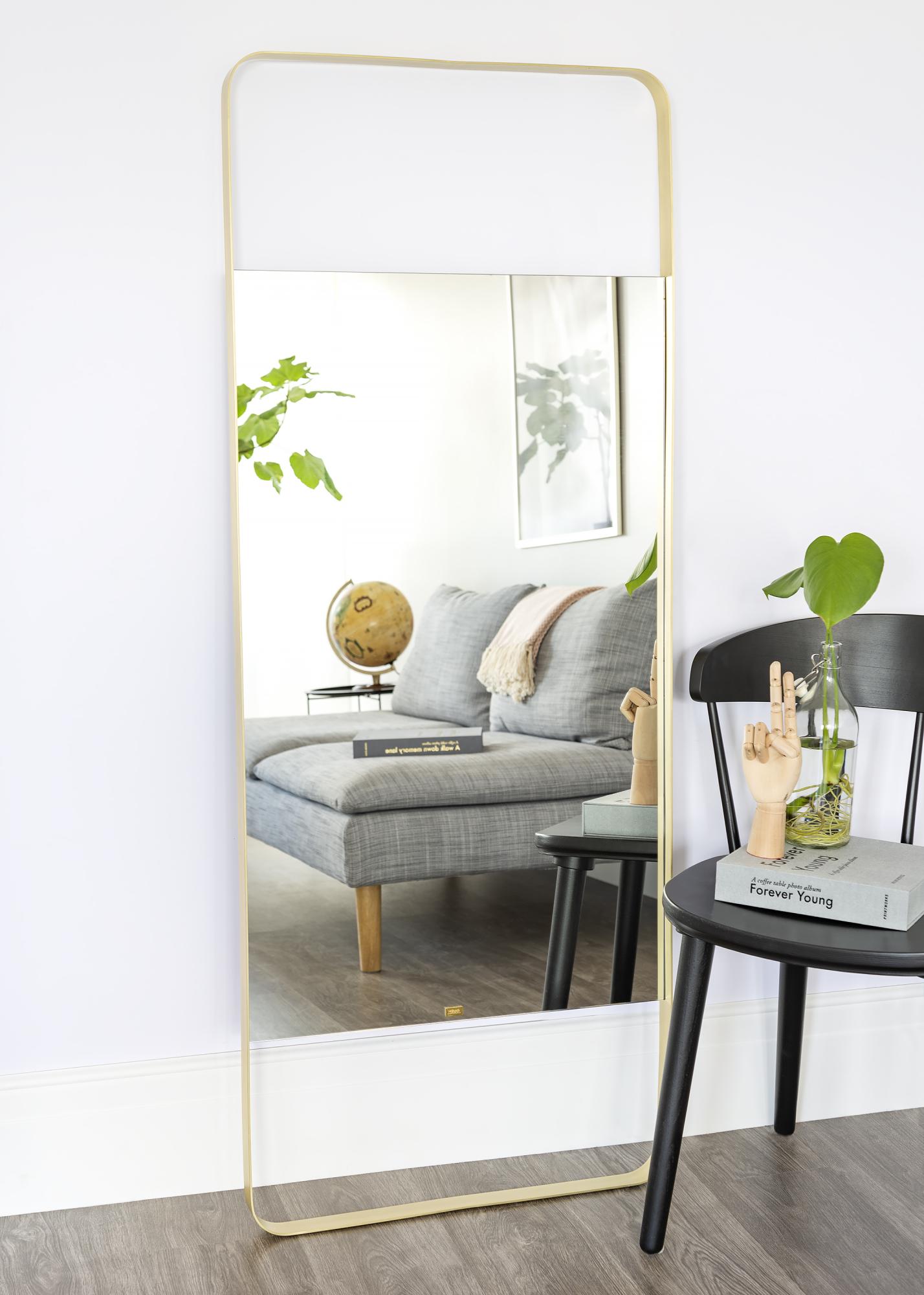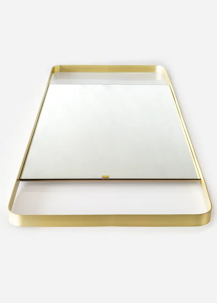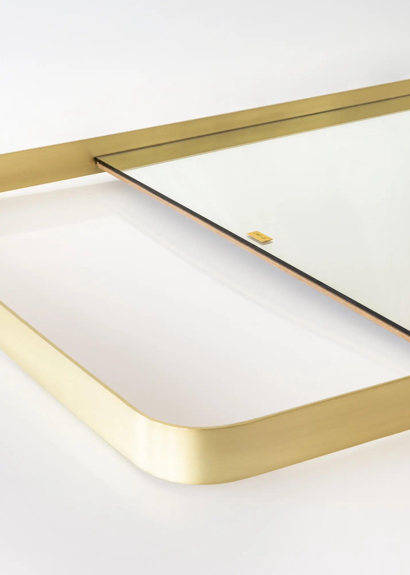 Un miroir intégral qui n'est pas uniquement fonctionnel, mais également très décoratif. Les coins arrondis et le cadre épuré en laiton donnent à ce miroir une impression de douceur et d'élégance.