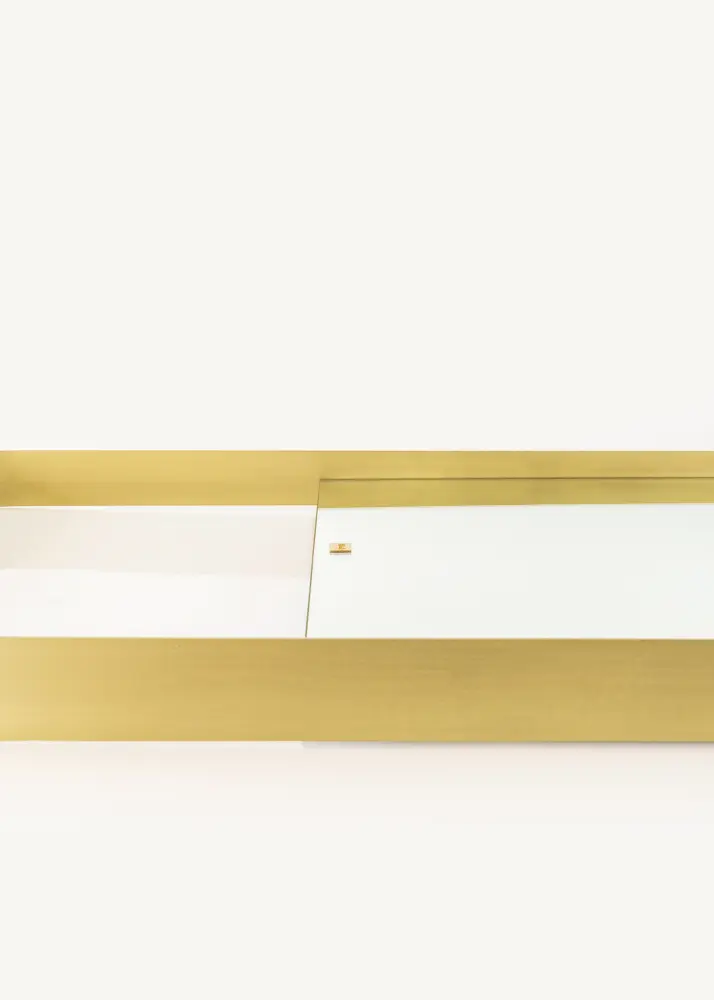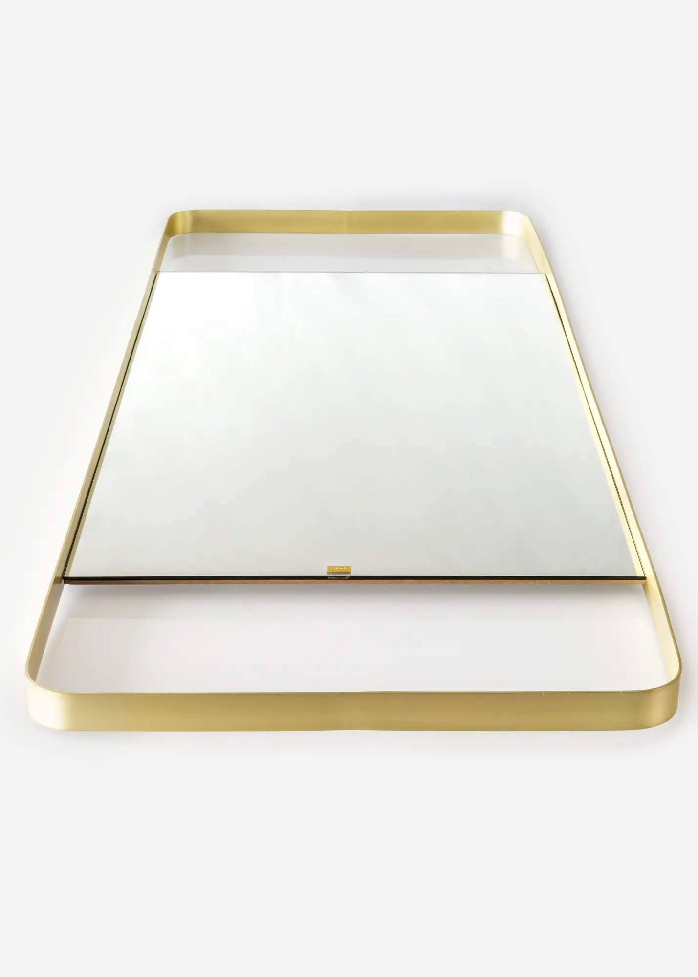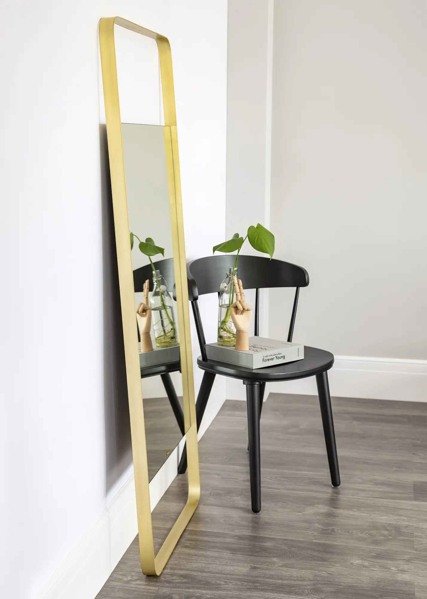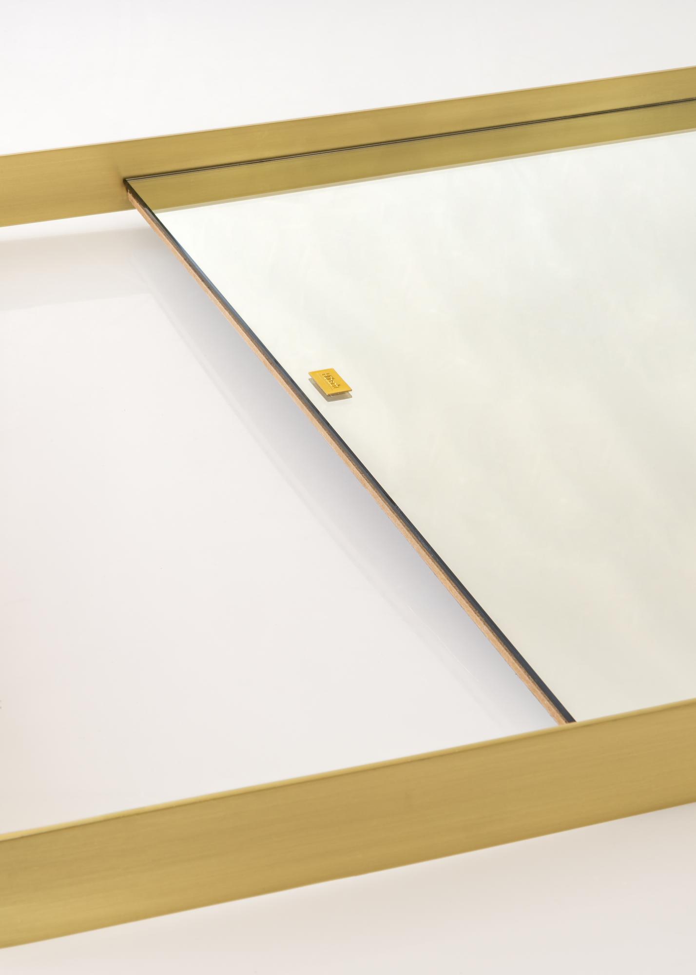 Un miroir intégral qui n'est pas uniquement fonctionnel, mais également très décoratif. Les coins arrondis et le cadre épuré en laiton donnent à ce miroir une impression de douceur et d'élégance.