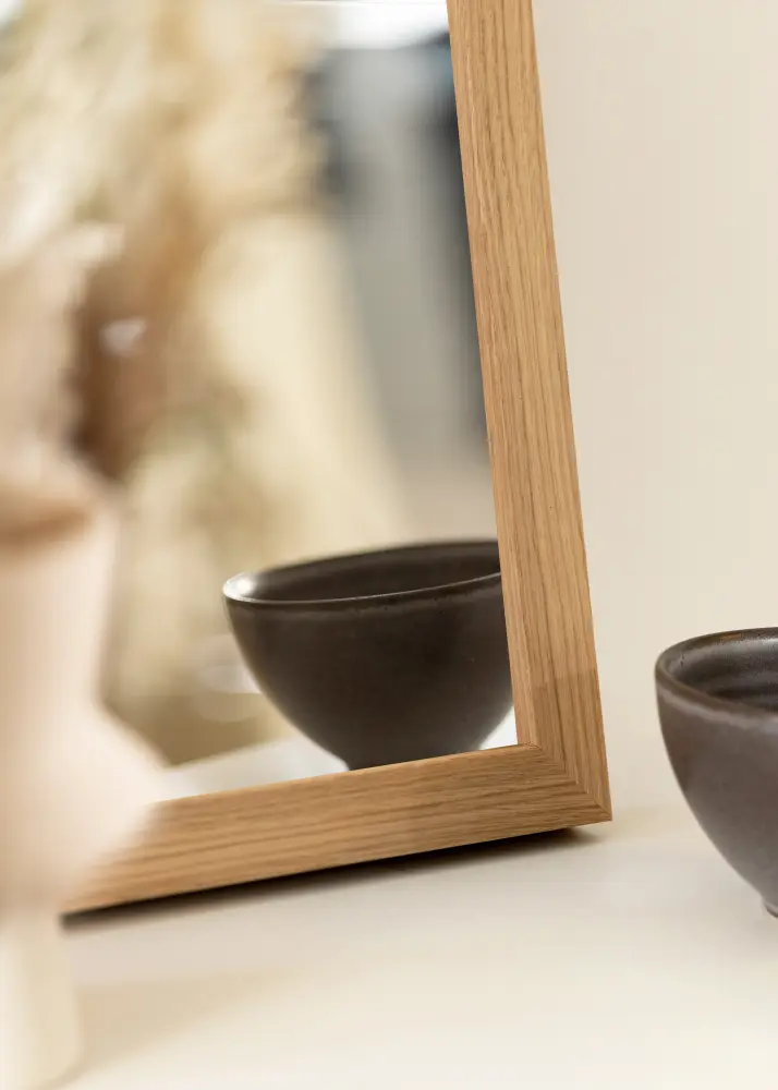 Le miroir Hathor Chêne est un miroir sur mesure que nous fabriquons pour répondre à vos besoins. Avec sa surface à motif de chêne et sa structure en bois naturel, il constitue un élément élégant dans votre maison. Ce miroir a une baguette de cadre de 30 mm de large qui encadre le verre du miroir de manière élégante, tout en lui conférant une sensation robuste.