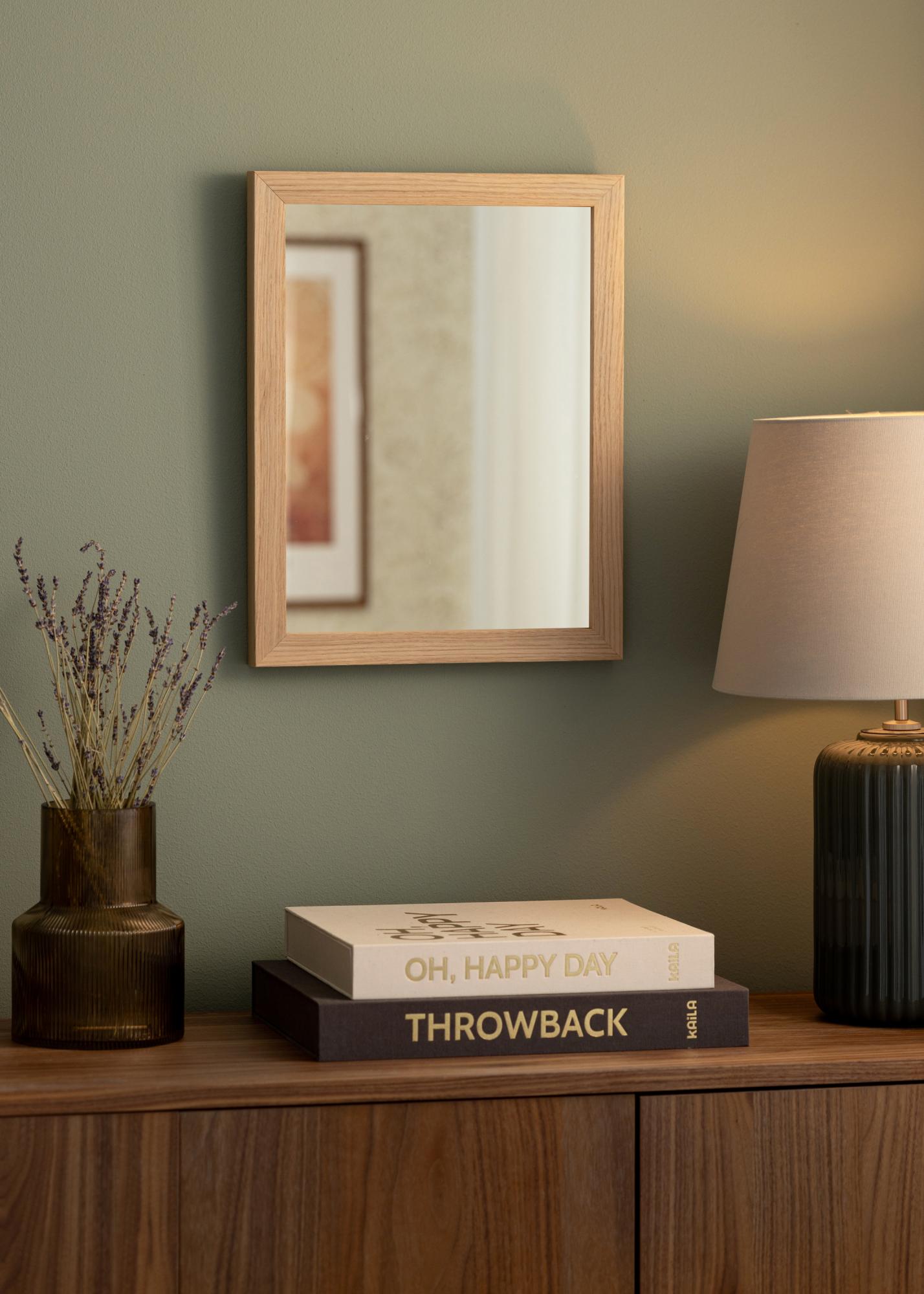 Le cadre est fabriqué en pin, ce qui le rend à la fois durable et léger. La profondeur de 32 mm donne au miroir une construction stable et lui permet de tenir solidement au mur. La teinte chaude du motif chêne met en valeur le design intemporel du miroir et le rend facile à assortir avec différents styles de décoration intérieure.