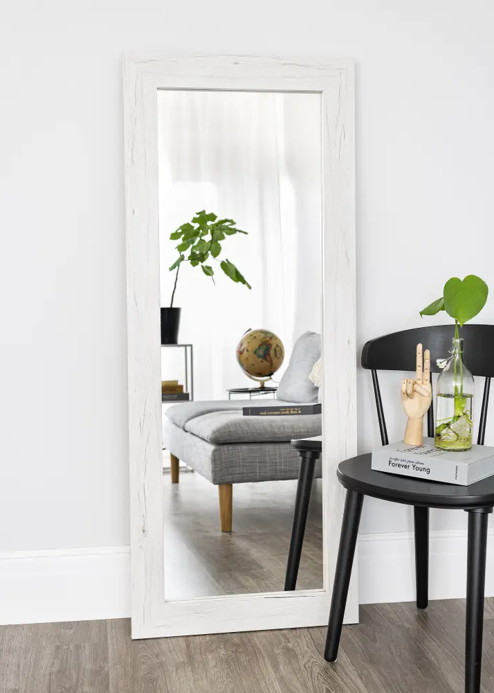 Placez le miroir là où il remplit sa fonction pratique de miroir intégral et de détail intérieur décoratif; dans le hall ou la chambre, par exemple. Un beau et grand miroir comme celui-ci peut également être utilisé pour créer de l'espace et ajouter une atmosphère chaleureuse dans votre salon ou dans les autres pièces de la maison.