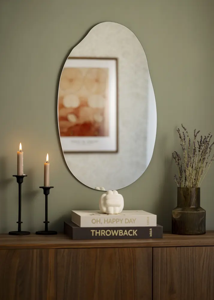 Découvrez le miroir élégant et moderne conçu pour donner à votre pièce une sensation d'espace et de lumière. Avec ses dimensions généreuses de 45x75 cm, ce miroir convient parfaitement aux petits espaces comme aux grands. Sa forme unique est ovale allongée et se transforme doucement en une forme effilée en haut, créant ainsi un profil sophistiqué et contemporain qui attire le regard.
