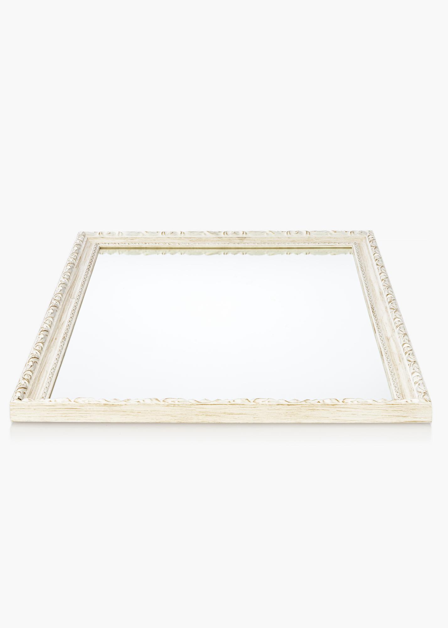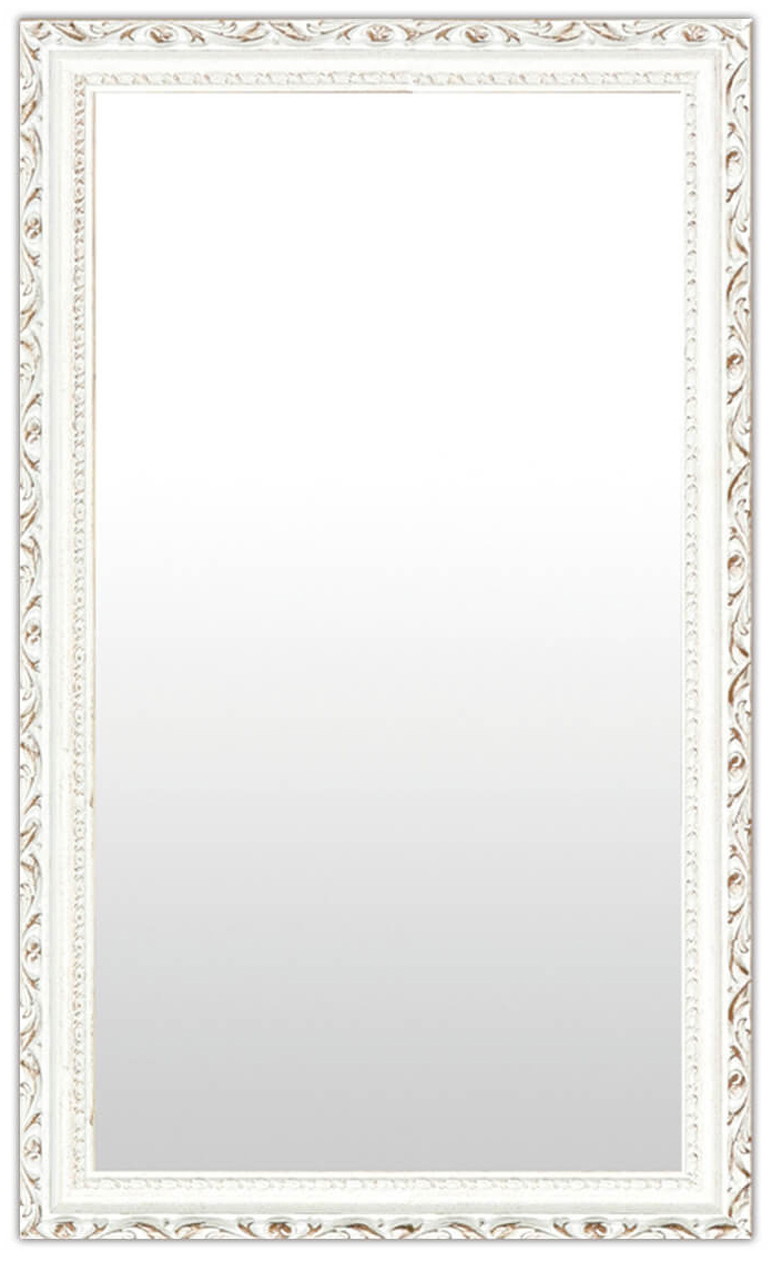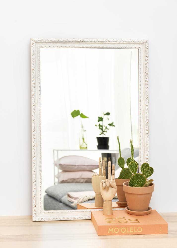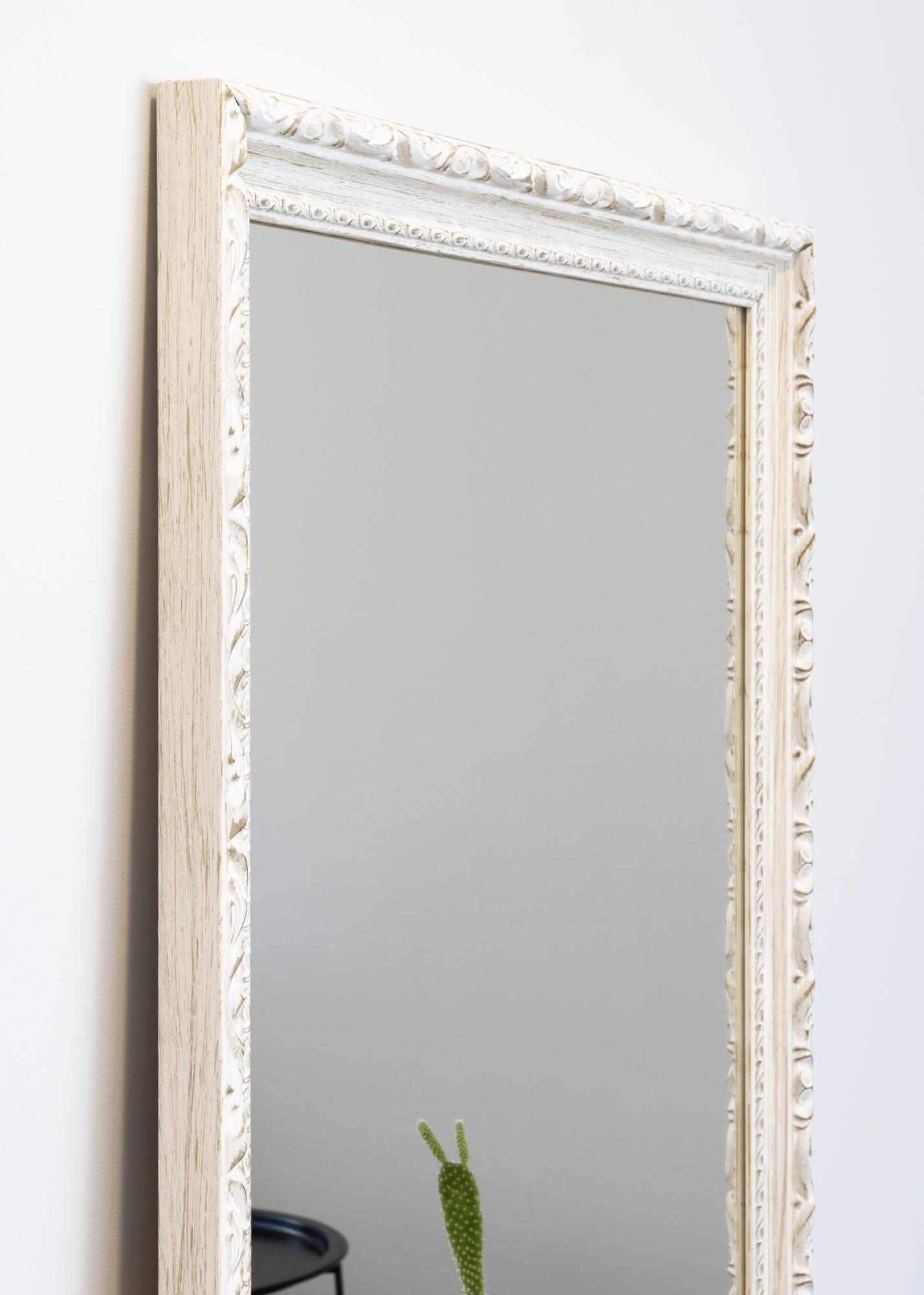 Miroir blanc de style ancien avec veines de bois apparentes et d'une largeur de 40 mm. Un excellent choix lorsque vous recherchez un miroir qui se démarque et prend de la place.