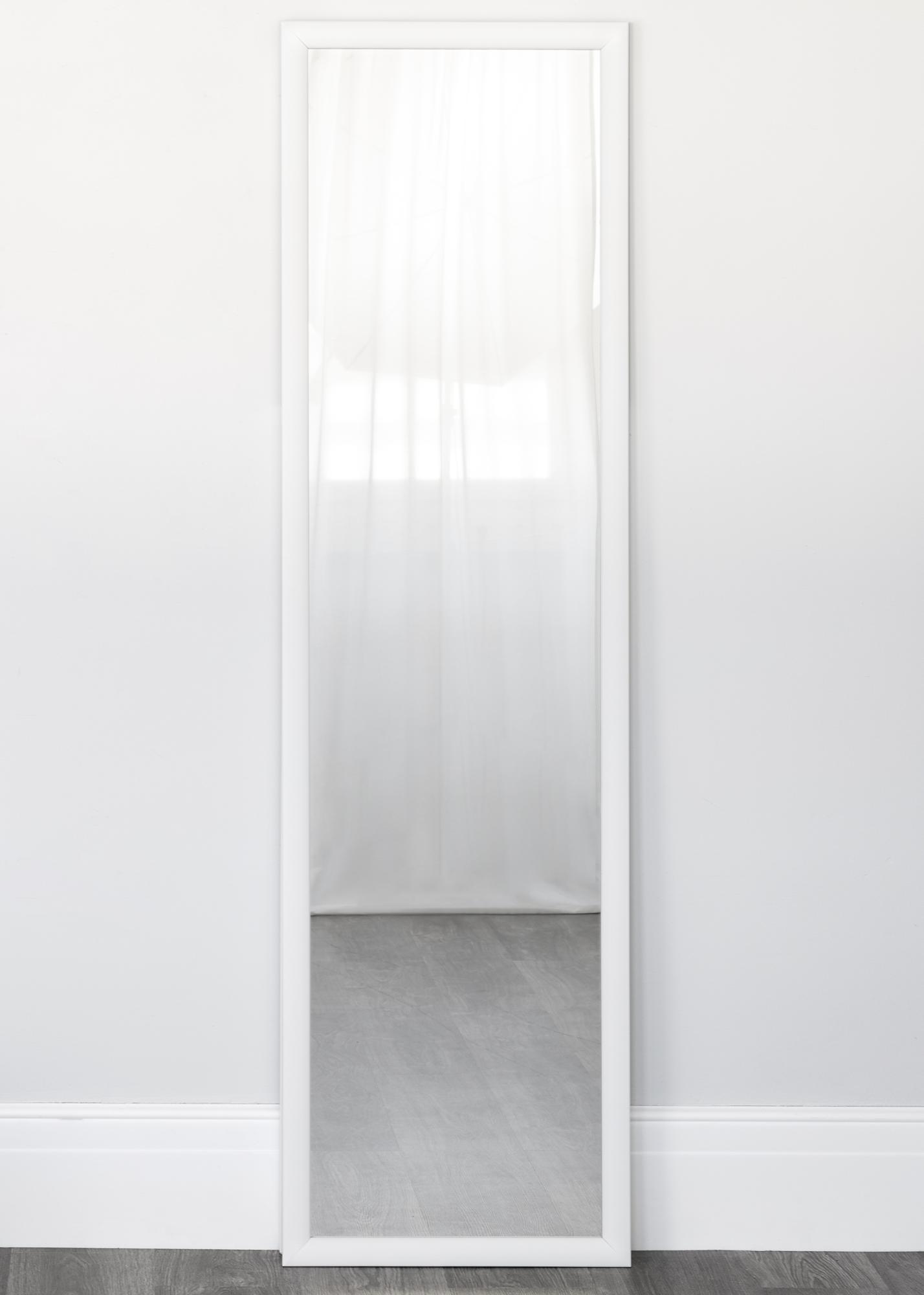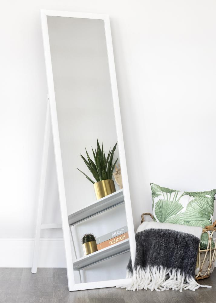 De couleur blanche, ce miroir sur pied en bois s'intègre parfaitement dans les environnements où un miroir intégral est nécessaire mais où la surface murale pour en accrocher fait défaut. L'apparence et la couleur épurées du miroir lui permettent de s'intégrer dans tous les types d'intérieur et toutes les palettes de couleurs. Il est beau à placer dans un dressing avec une surface au sol légèrement plus grande ou dans la chambre qui sert également de rangement pour les vêtements. Le miroir est pratique car il est facile à déplacer en cas de besoin.