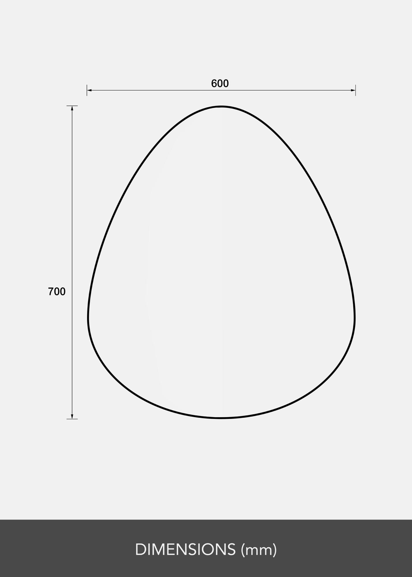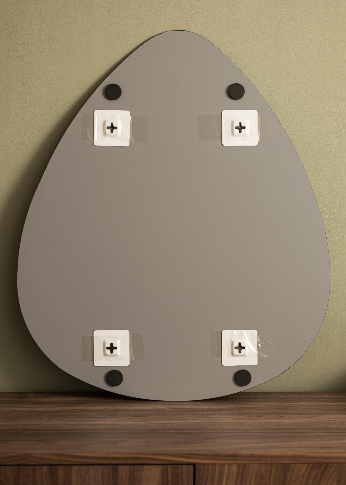 Le design du miroir est à la fois moderne et intemporel, avec une large partie supérieure légèrement effilée et arrondie qui crée une silhouette distincte en forme de goutte. Cette forme apporte douceur et une touche organique à la pièce, ce qui fait que le miroir s'adapte à une variété de styles de décoration.