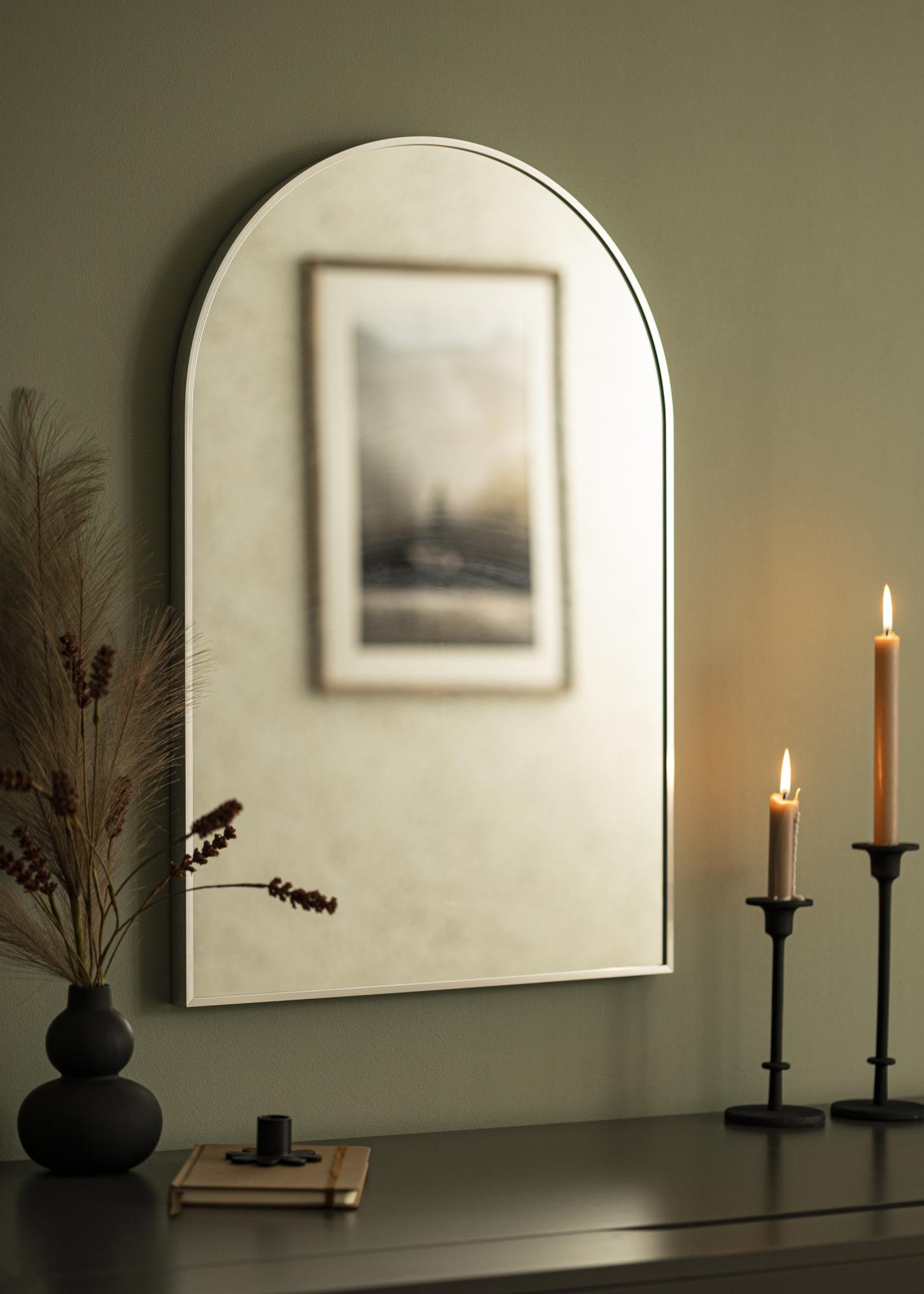 Ce miroir mural est à la fois tendance et fonctionnel - en d'autres termes, il est idéal pour tous ! Son design prenant la forme d'une arche est complété d'un cadre d'une profondeur de 28 mm de couleur argent, ce qui donne au miroir son aspect si moderne. Le cadre est conçu en métal.