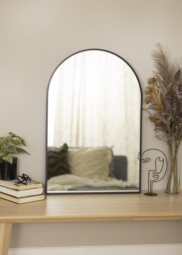 Voici un excellent choix pour ceux qui recherchent un miroir dans un design moderne avec la forme d'une arche tendance et un cadre noir élégant. Le cadre du miroir a une profondeur de 28 mm et est conçu en métal. Ce miroir deviendra un détail très décoratif dans le hall d'entrée ou le salon, où il reflétera merveilleusement la lumière des diverses sources lumineuses présentes dans la pièce. Grâce à sa matière robuste, il peut également être utilisé dans la salle de bain.