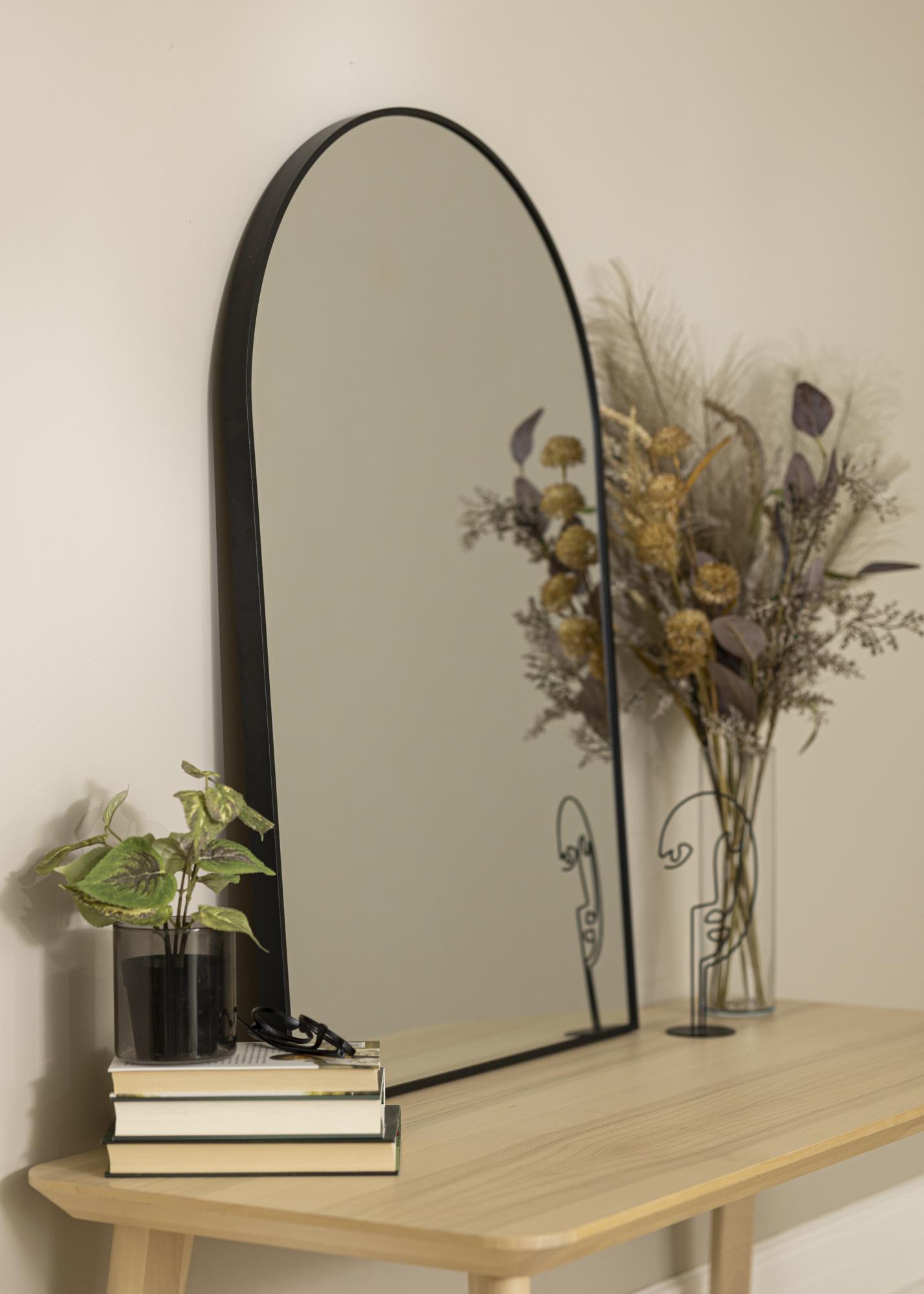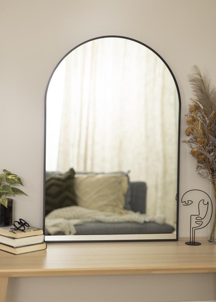 Voici un excellent choix pour ceux qui recherchent un miroir dans un design moderne avec la forme d'une arche tendance et un cadre noir élégant. Le cadre du miroir a une profondeur de 28 mm et est conçu en métal. Ce miroir deviendra un détail très décoratif dans le hall d'entrée ou le salon, où il reflétera merveilleusement la lumière des diverses sources lumineuses présentes dans la pièce. Grâce à sa matière robuste, il peut également être utilisé dans la salle de bain.