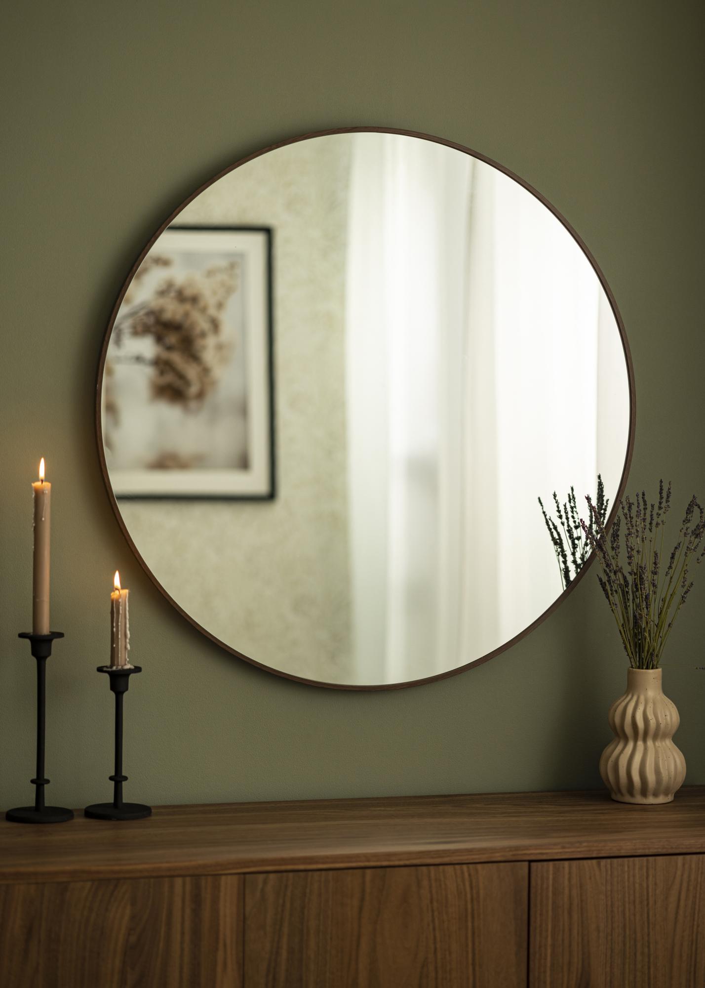 Découvrez l'élégance épurée de notre miroir mural, parfait pour ajouter une sensation d'espace et de lumière dans votre maison. Avec un diamètre impressionnant de 80 cm, ce miroir est un véritable accroche-regard dans n'importe quelle pièce. Sa forme ronde apporte une sensation de douceur et d'invitation, tandis que son cadre en aluminium couleur noyer apporte une touche de sophistication.