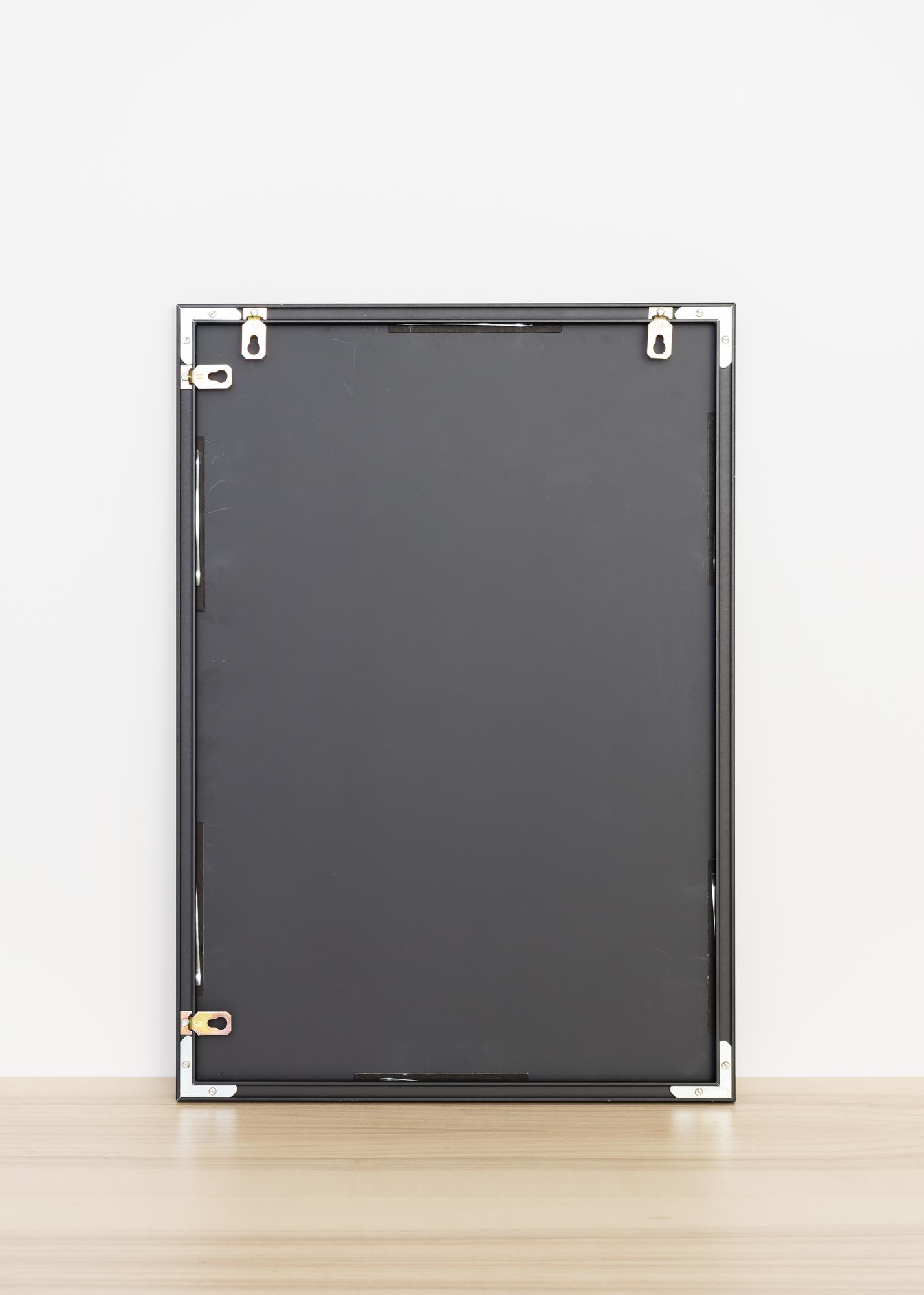 Lancer le sélecteur de cadres »Un miroir épuré au cadre en aluminium noir. Le miroir est équipé de supports muraux judicieux, ce qui le rend facile à accrocher.