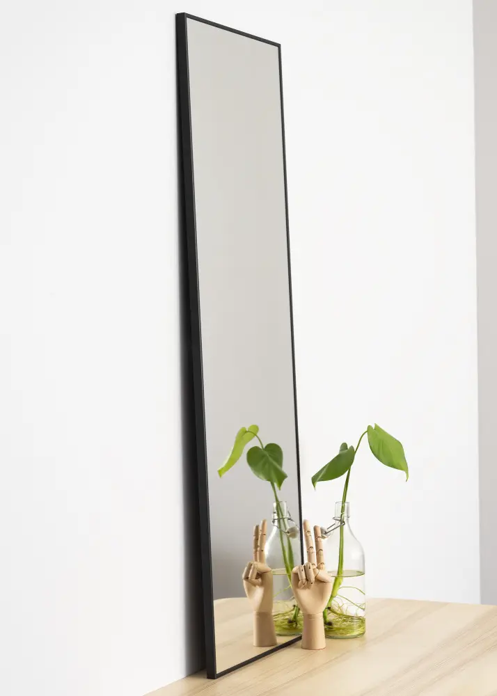 Miroir au design simple et classique avec un cadre noir en aluminium, 40 x 120 cm.