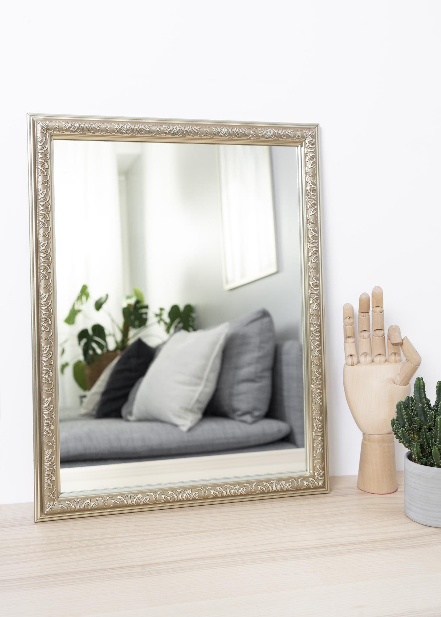 Lancer le sélecteur de cadres »Nost Argent est le nom d'une série de miroirs muraux. Le cadre est richement décoré de symboles irréguliers qui donnent une impression légèrement mystérieuse.
