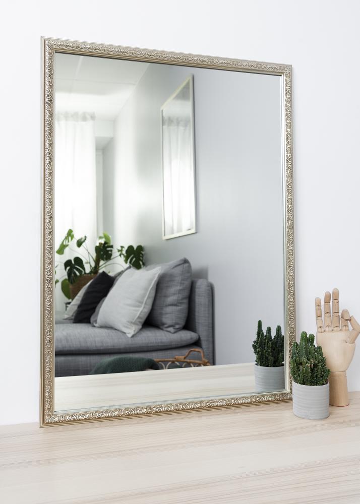 Lancer le sélecteur de cadres »Nost Argent est le nom d'une série de miroirs muraux. Le cadre est richement décoré de symboles irréguliers qui donnent une impression légèrement mystérieuse.