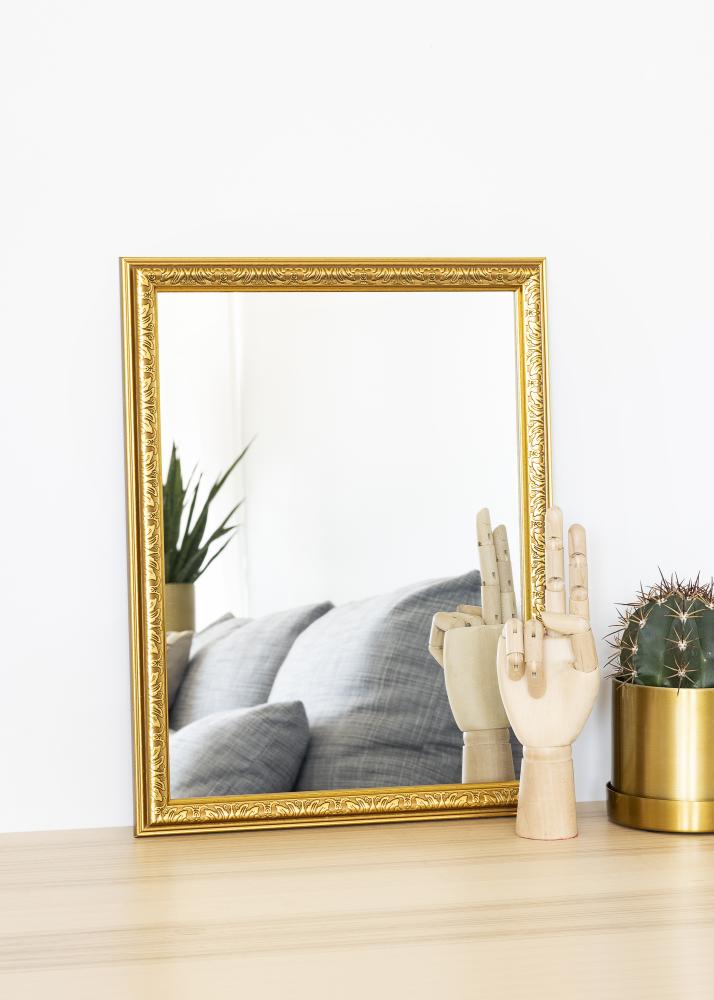 Lancer le sélecteur de cadres »Nost Or est le nom d'une série de miroirs muraux. Le cadre est richement décoré de symboles irréguliers qui donnent une impression légèrement mystérieuse.
