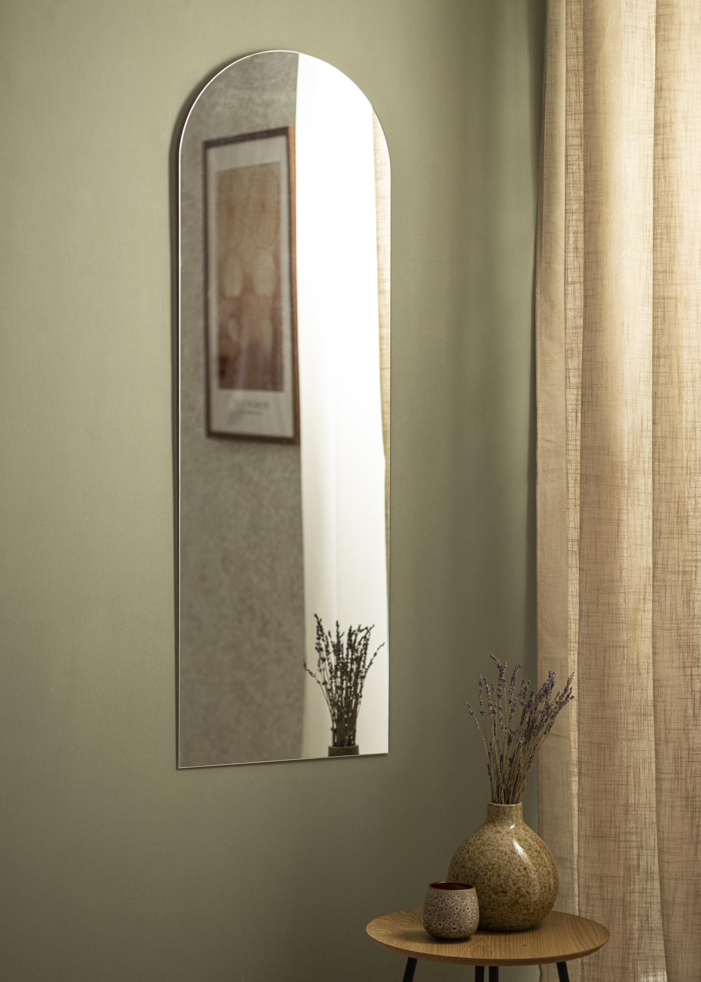 Voici un miroir mural oblong qui parfaitement adapté en tant que miroir plein pied dans le hall ou bien la chambre à coucher. Il sera également très beau de le placer au-dessus d'un meuble - par exemple une table d'appoint ou un buffet - pour créer un contraste dynamique. Le miroir mural a un design minimaliste avec une forme d'arche, et est dépourvu de cadre. Le verre réfléchissant est fin, pour plus d'élégance.