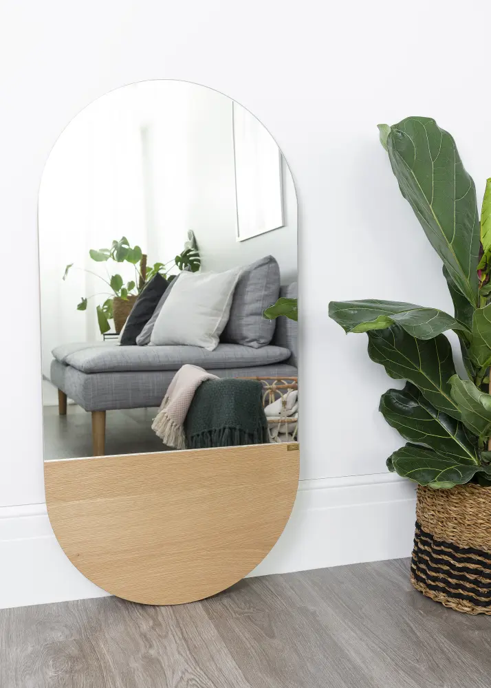 Ce miroir mural ovale du danois Hübsch est la preuve qu'un design simple et épuré peut avoir un grand effet sur l'ensemble. Le revers du miroir et la partie inférieure de la face du miroir sont pourvus de chêne, ce qui lui donne un aspect naturel et chaleureux.