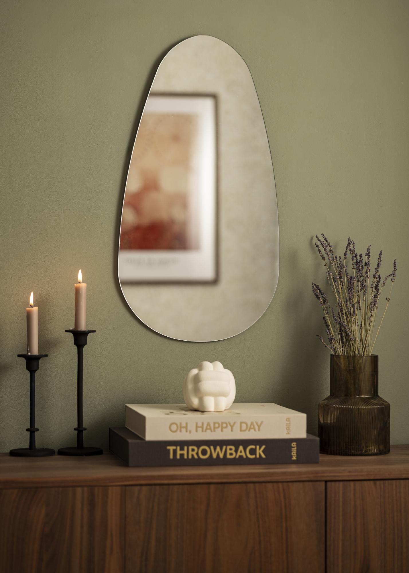 Ce miroir n'est pas seulement un détail pratique, mais aussi une pièce décorative qui complète votre intérieur. Sa silhouette élégante en forme de goutte d'eau s'étend en douceur vers le haut, créant une sensation de calme et de beauté dans la pièce. Il est conçu pour être accroché à la fois debout et couché, vous donnant la flexibilité de l'adapter à votre espace et à votre style personnel.