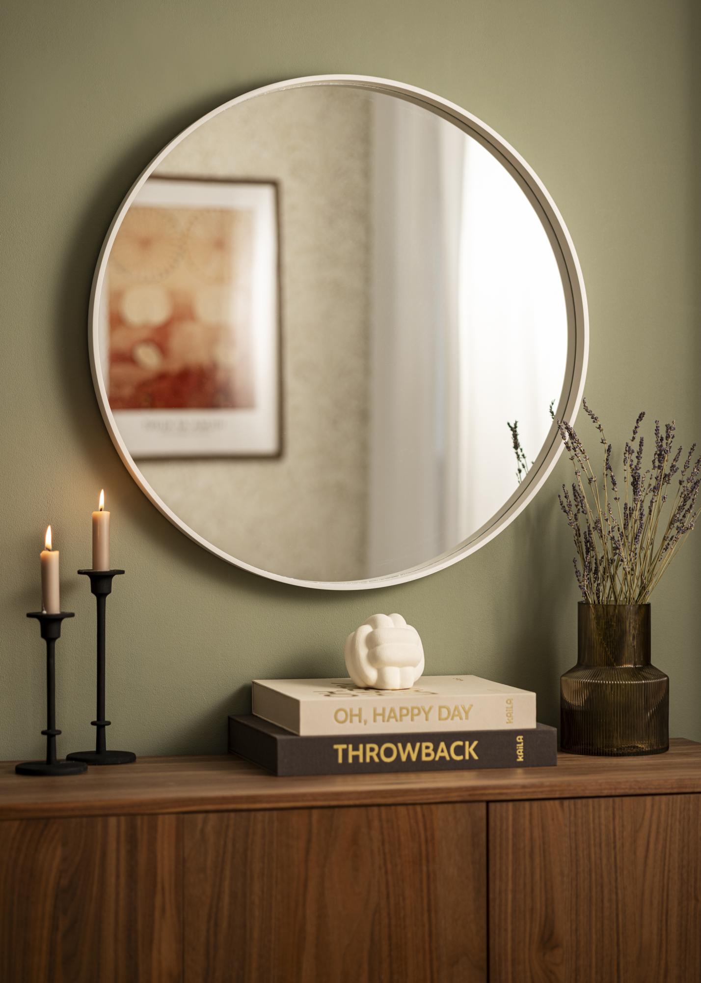 Découvrez la simplicité élégante de notre miroir rond, un élément intemporel qui convient parfaitement à tous les intérieurs. Le cadre blanc entourant le miroir ajoute une touche de luminosité et de pureté qui complète toutes les couleurs et tous les styles dans votre pièce. Son design minimaliste lui permet de se fondre dans votre décoration tout en restant un accent distinctif sur le mur.