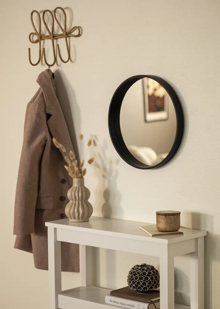 Découvrez la simplicité élégante de notre miroir rond, un élément de décoration intemporel qui convient parfaitement à chaque maison. Ce miroir rond épuré se distingue par son cadre noir, qui apporte une sensation de fraîcheur et de modernité à la pièce. Son design minimaliste lui permet de s'intégrer dans différents styles de décoration, du scandinave à l'industriel.