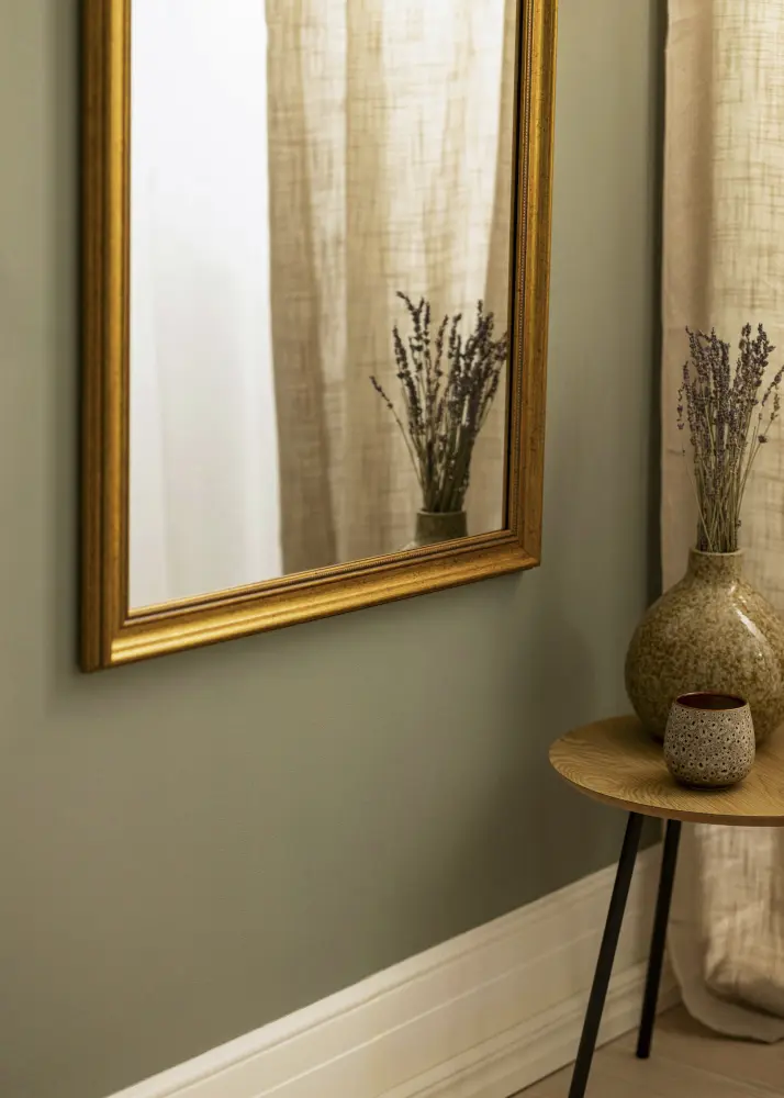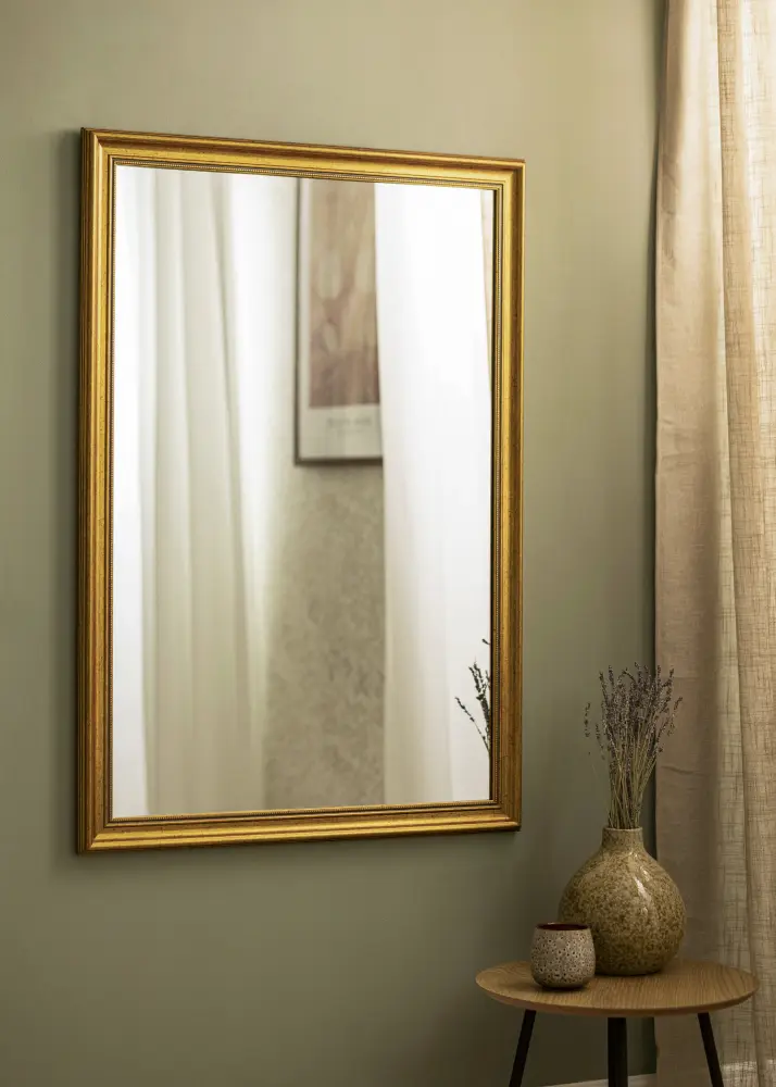 Rokoko est une série de miroirs par Estancia avec un joli encadrement dans un élégant style rococo. L'encadrement est de couleur dorée, ce qui apporte au miroir une impression vraiment luxueuse. Son apparence décorative et luxueuse fait de ce miroir un détail d'intérieur parfait dans le hall d'entrée, la chambre à coucher ou dans le salon. Le miroir est disponible dans plusieurs tailles, afin que vous puissiez choisir celui qui conviendra le mieux à votre maison. Ce miroir-ci mesure 70x100 cm.