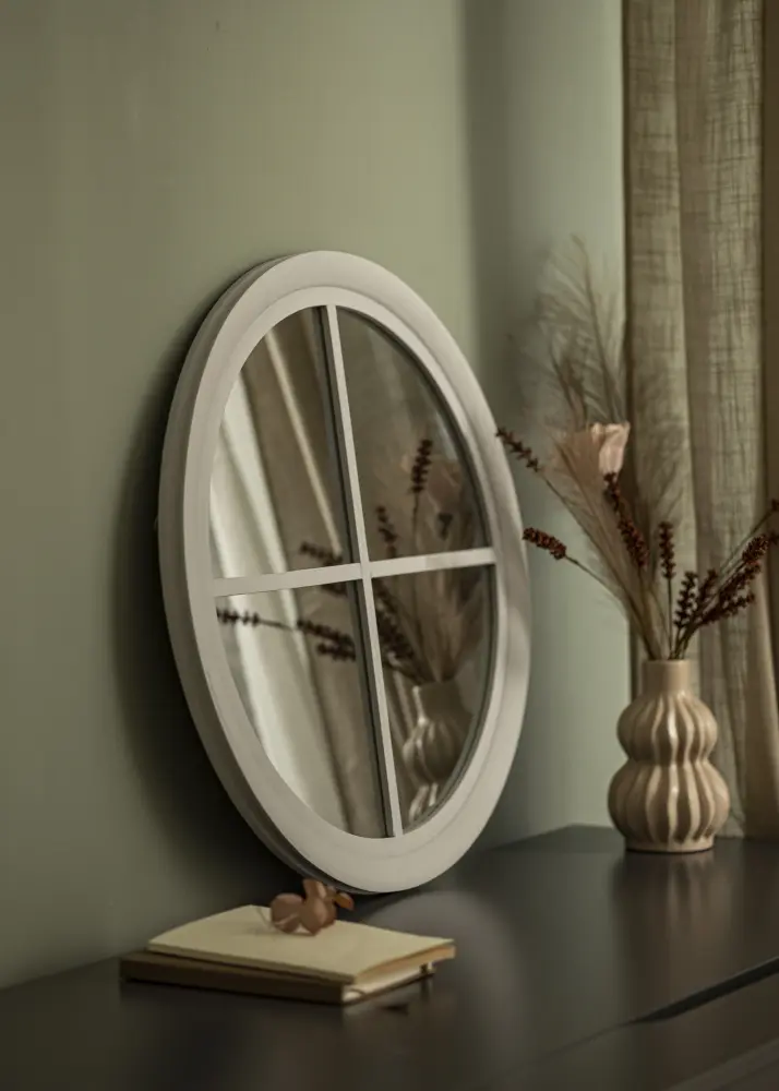 Miroir rond Window Gris 60 cm Ø