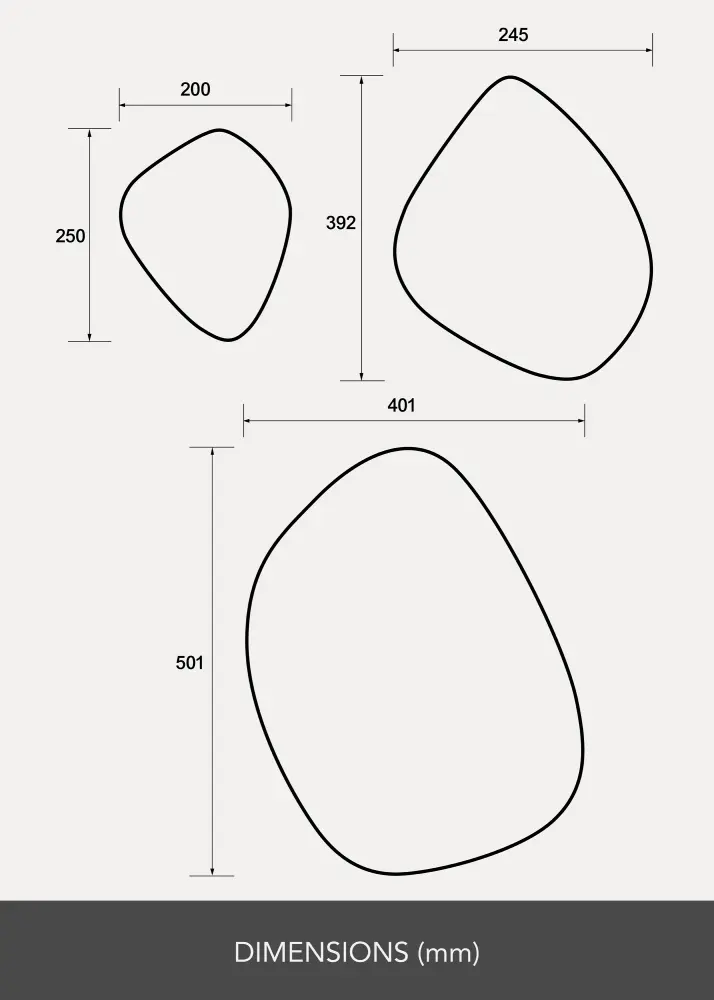 • Surface du miroir : 40x50 cm / 30x35 cm / 20x25 cm