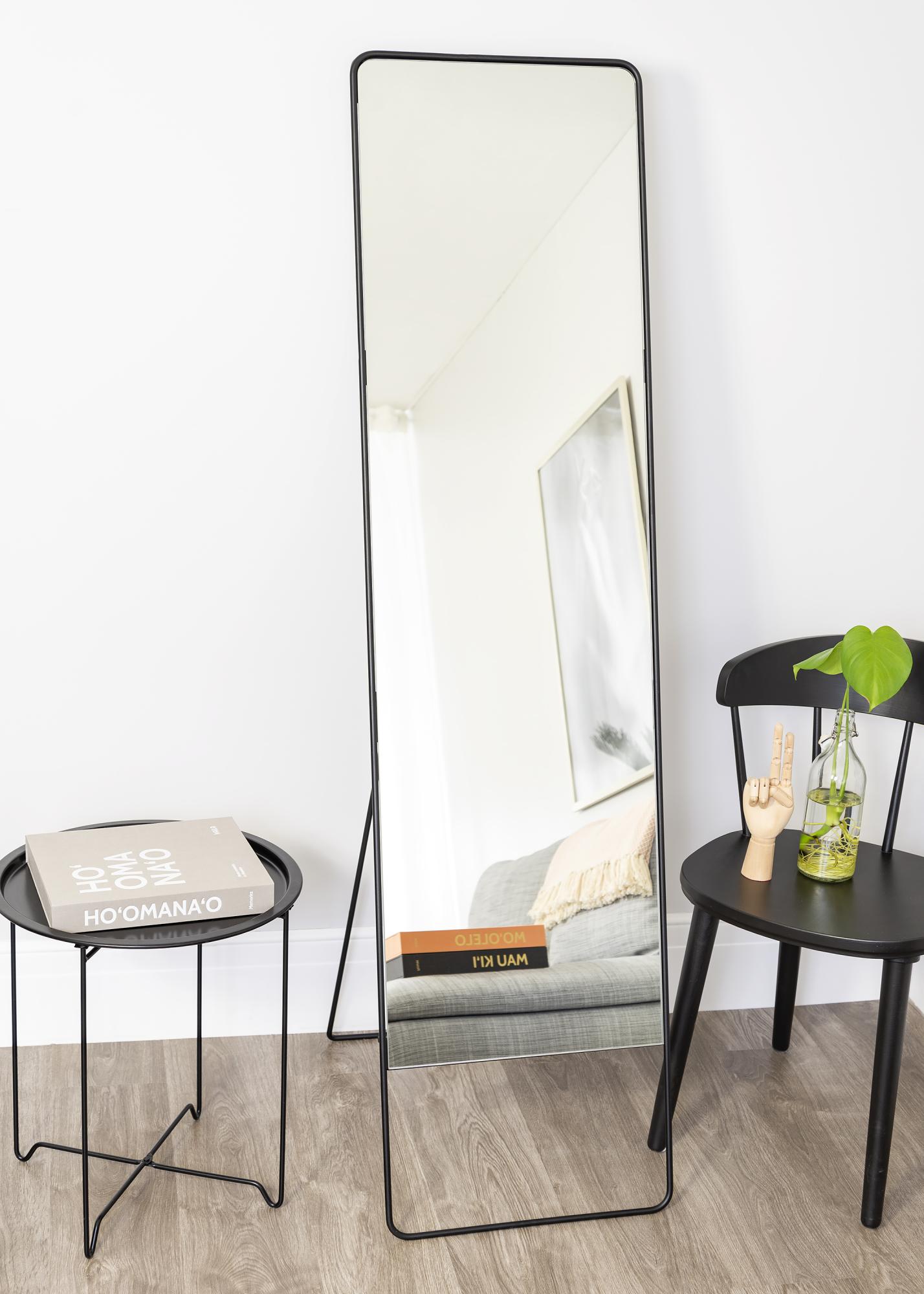 Magnifique miroir sur pied de House Doctor au design intemporel et aux lignes strictes et serrées. Le miroir est en fer peint noir et s'intègre parfaitement dans une décoration scandinave moderne.