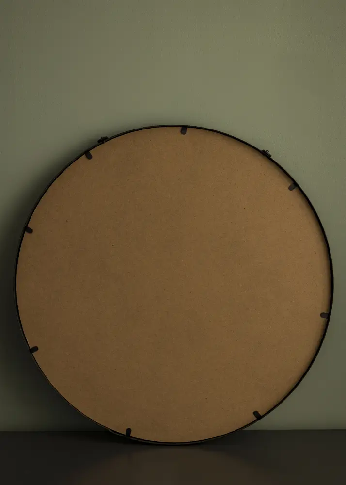 Ce miroir rond provient de danois House Nordic et il est disponible en deux tailles, dont cette variante plus grande avec un diamètre de 60 cm.