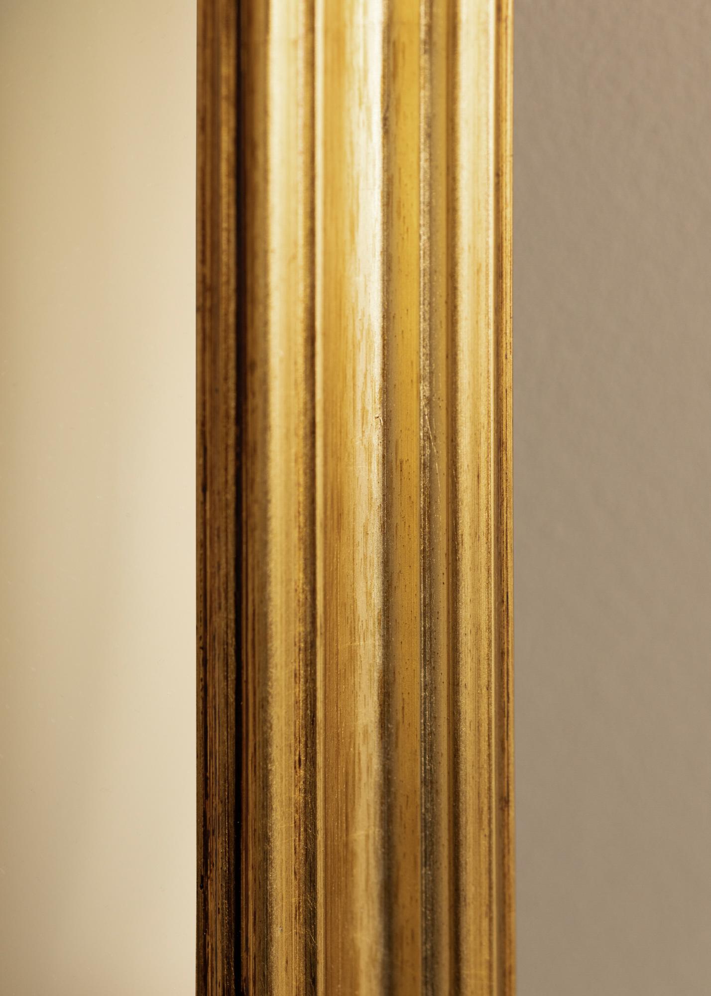 Ce miroir a une belle couleur or avec des profils arrondis doux qui lui confèrent une apparence classique et sophistiquée. La teinte or chaude a des nuances subtiles et une surface légèrement vieillie, contribuant à une expression intemporelle qui s'intègre aussi bien dans des intérieurs modernes que traditionnels. Le miroir peut facilement devenir un élément central de votre pièce, que vous le placiez dans le couloir, le salon ou la chambre.