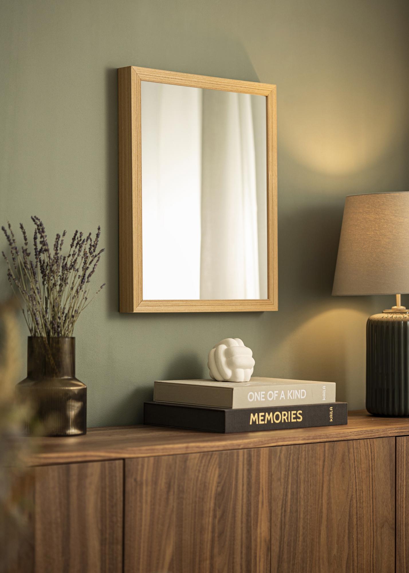 Ce miroir a une finition élégante à motif de chêne qui donne une impression naturelle et raffinée. La baguette de cadre de 48 mm de large encadre le miroir de manière élégante et contribue à son apparence robuste. Avec une profondeur de 42 mm, le cadre donne également une sensation de stabilité et de qualité, ce qui fait du miroir une partie durable de votre intérieur.
