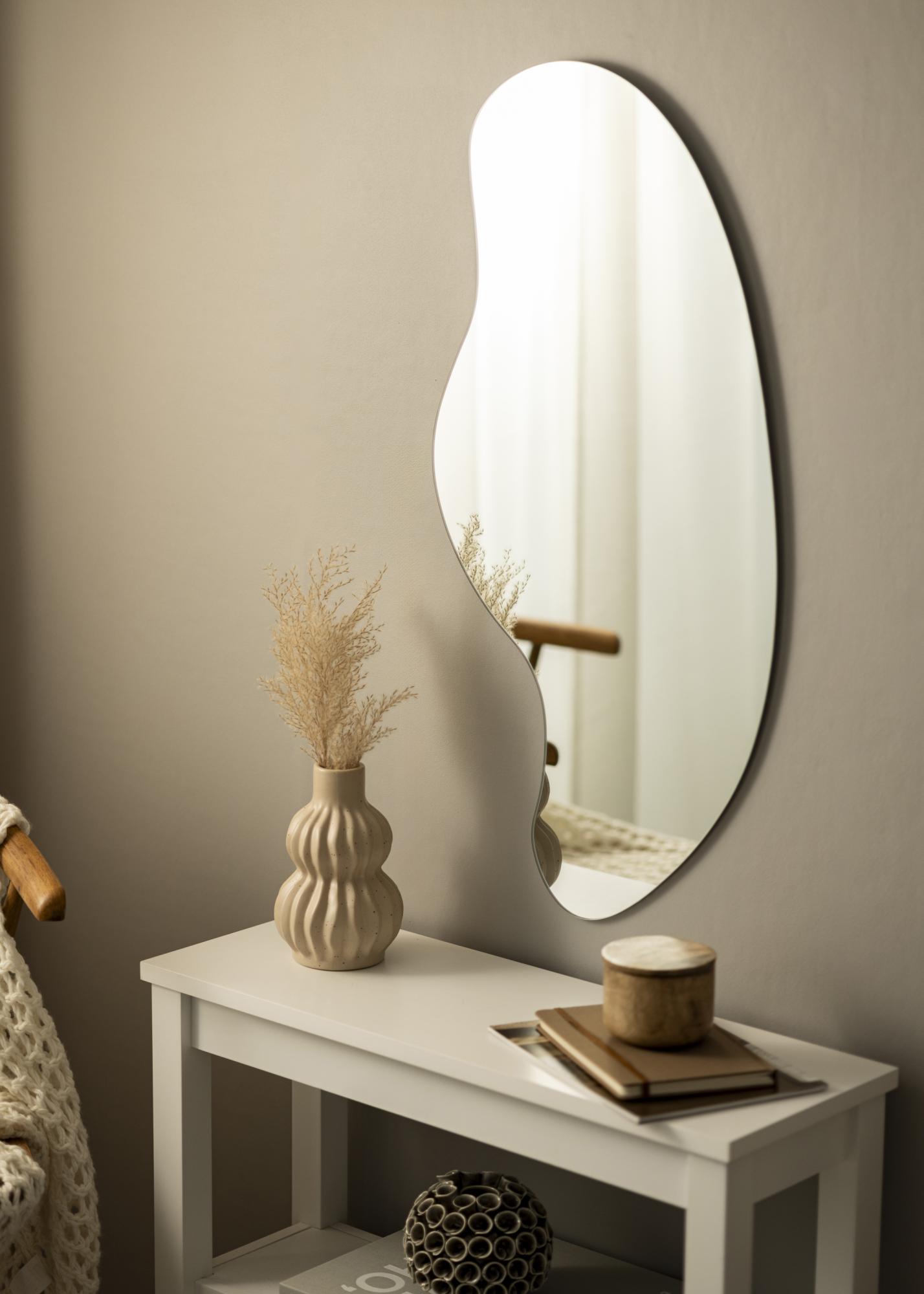 Wavy Cloud est un miroir avec un design unique et beaucoup d'élégance – idéal pour ceux qui sont à la recherche d'un détail d'intérieur original. Cette forme spéciale, avec un côté arrondi classique et un côté de forme ondulée, crée un ensemble très élégant. Le miroir n'a pas de cadre et se dote d'un verre réfléchissant fin de seulement 4 mm, ce qui accroît encore plus la sensation d'élégance. Ce miroir mural fait 40x80 cm.