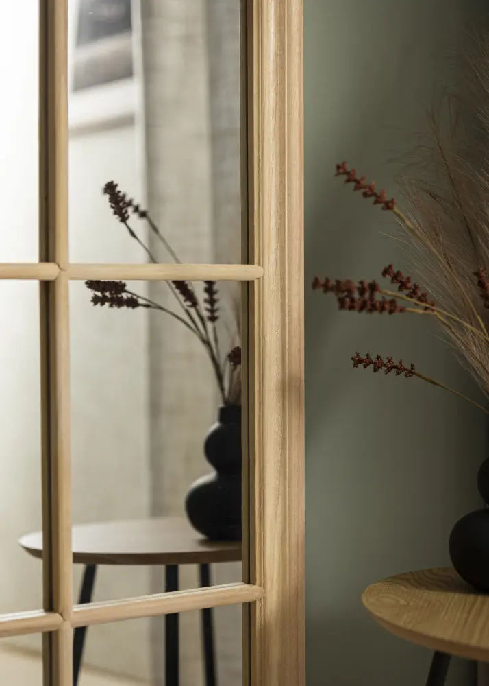Ce miroir est conçu pour être suspendu verticalement, ce qui en fait un choix parfait pour créer l'illusion de hauteur et d'espace dans la pièce. Il est idéal pour une utilisation dans le hall, la chambre ou le salon, où il sert non seulement de miroir fonctionnel mais aussi de détail décoratif qui complète votre décoration intérieure.