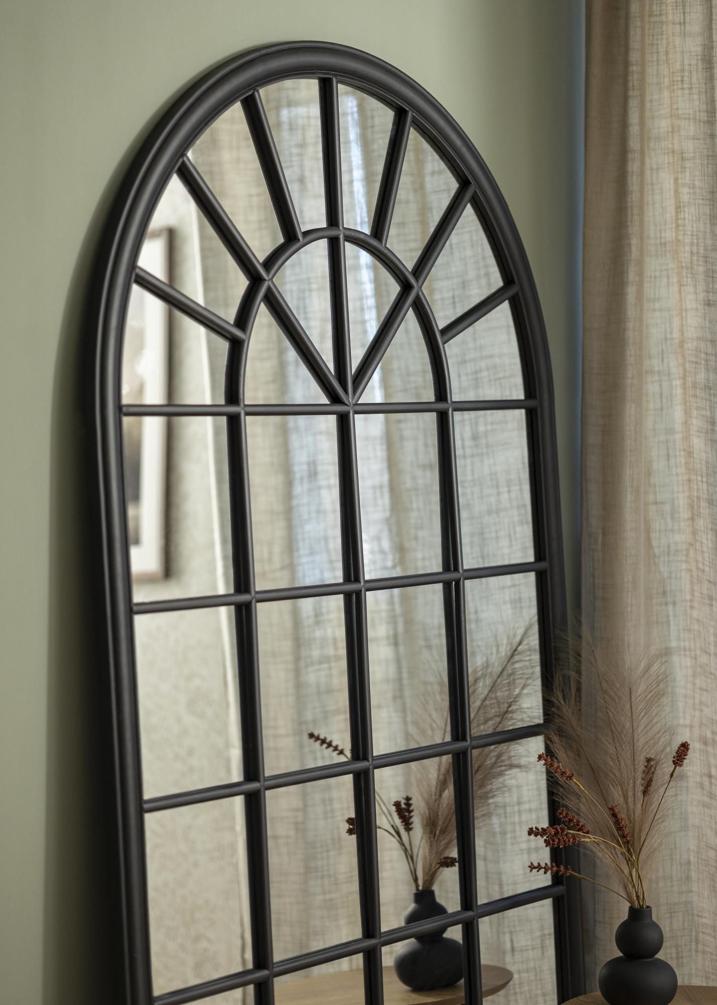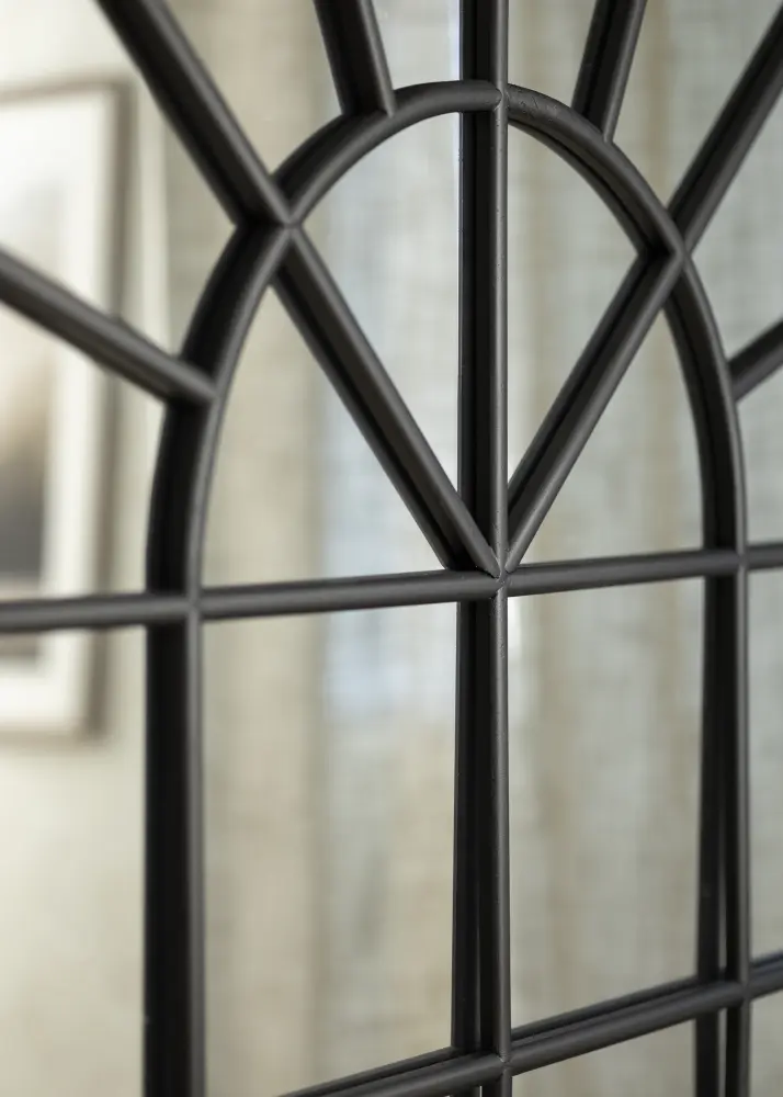 Découvrez la présence imposante de notre miroir unique, un véritable accroche-regard pour chaque pièce. Avec ses généreuses dimensions de 103x180 cm, ce miroir offre non seulement une fonction pratique mais devient également une partie de votre décoration intérieure. Son impressionnante forme de demi-arc complétée par une grille captivante de fenêtre lui donnent une esthétique industrielle distincte.