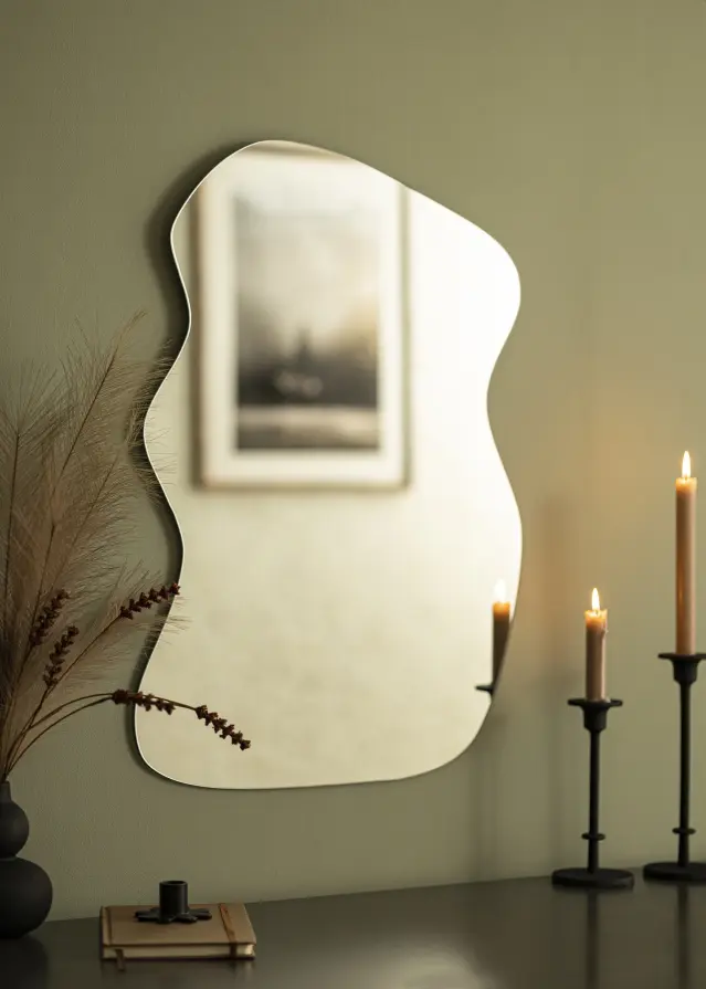 Les miroirs asymétriques regroupent les modèles muraux aux formes irrégulières ou originales. Cela inclut des miroirs ovales légèrement courbés, des formes en goutte, en arche ou inspirées des nuages. Notre assortiment propose une variété de designs uniques afin que vous puissiez trouver le modèle qui correspond parfaitement à vos préférences. Vous recherchez peut-être un petit miroir discret ? Un grand miroir imposant ? Ou encore un modèle sans cadre pour un style plus minimaliste ? À vous de choisir ce qui convient le mieux à votre intérieur.