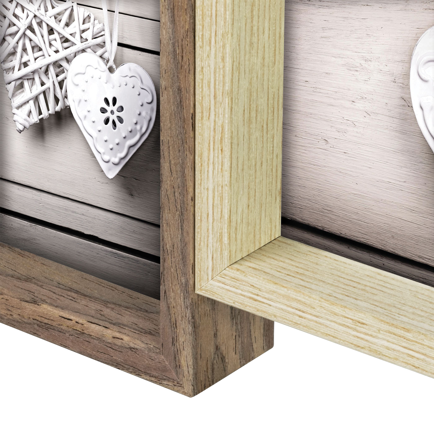 Le cadre peut contenir 12 photos, toutes de taille 10x15 cm, ce qui facilite la création d'un mur photo personnalisé et varié. Avec ses dimensions de 59x44,5 cm, il devient un détail accrocheur sur le mur.