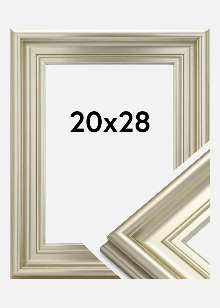Mora Premium argent est l'un de nos plus beaux cadres photo. Fait dans des bois provenant de nos magnifiques forêts suédoises et produit dans notre propre atelier de fabrication de cadres. Cela nous permet de promettre une qualité hors du commun. Le cadre a un profil d'une douce couleur argentée de style peint à l'ancienne et d'une largeur imposante de 57 mm. Parfait pour encadrer vos plus belles photos !