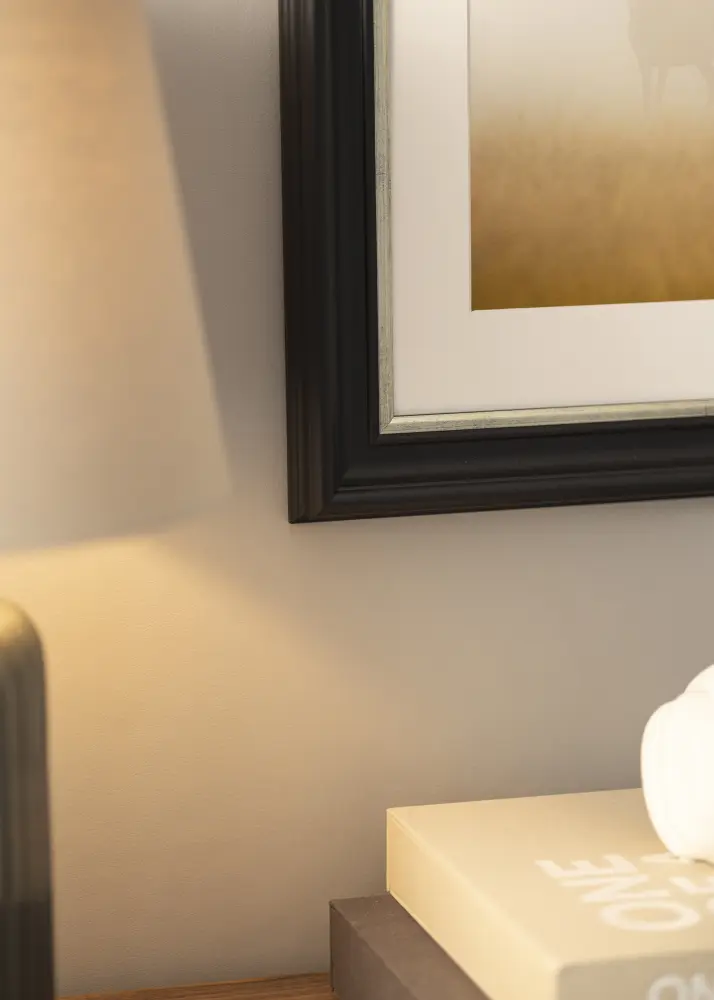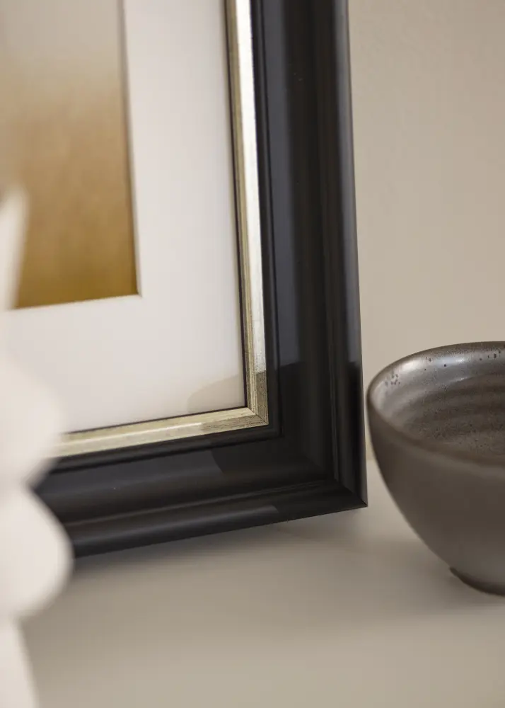 Mora Premium Schwarz-Silber ist einer unserer feinsten rahmen. Hergestellt aus Holz aus unseren schönen schwedischen Wäldern und montiert in unserer eigenen Rahmenwerkstatt. Das ermöglicht es uns, eine Qualität über das Übliche hinaus zu versprechen. Der Rahmen hat ein stilvolles breites schwarzes Profil von ganzen 57 mm mit einem dünnen silbergebürsteten Rand am nächsten zum Motiv. Perfekt für deine schönsten Bilder!