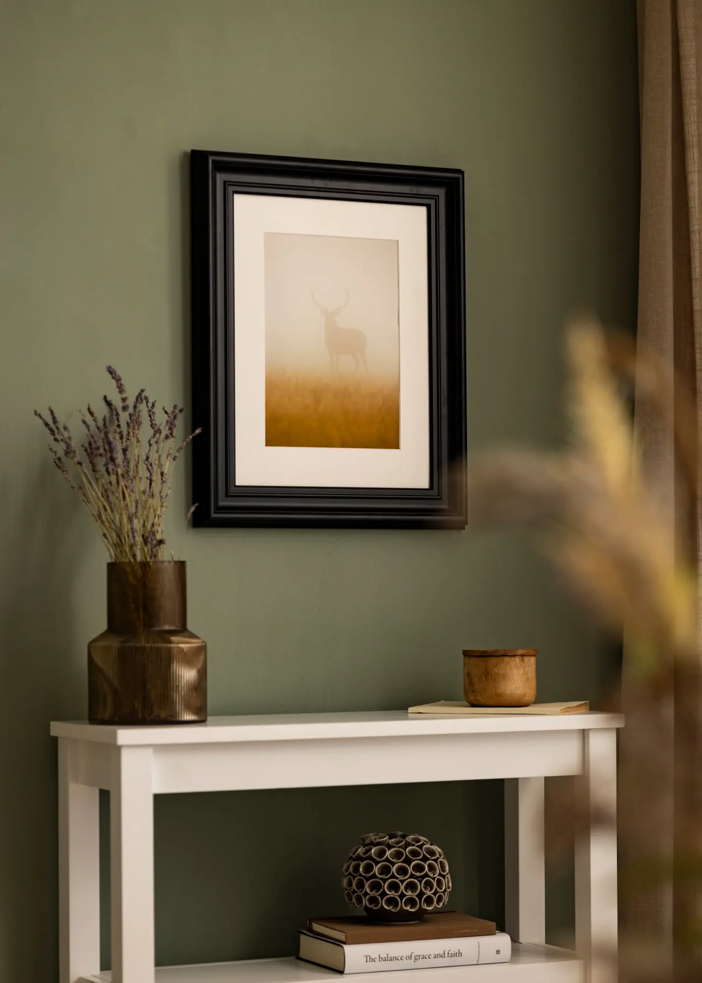 Mora Premium noir est l'un de nos plus beaux cadres photo. Fait dans des bois provenant de nos magnifiques forêts suédoises et produit dans notre propre atelier de fabrication de cadres. Cela nous permet de promettre une qualité hors du commun. Le cadre a un large profil noir élégant d'une largeur imposante de 57 mm. Parfait pour encadrer vos plus belles photos !