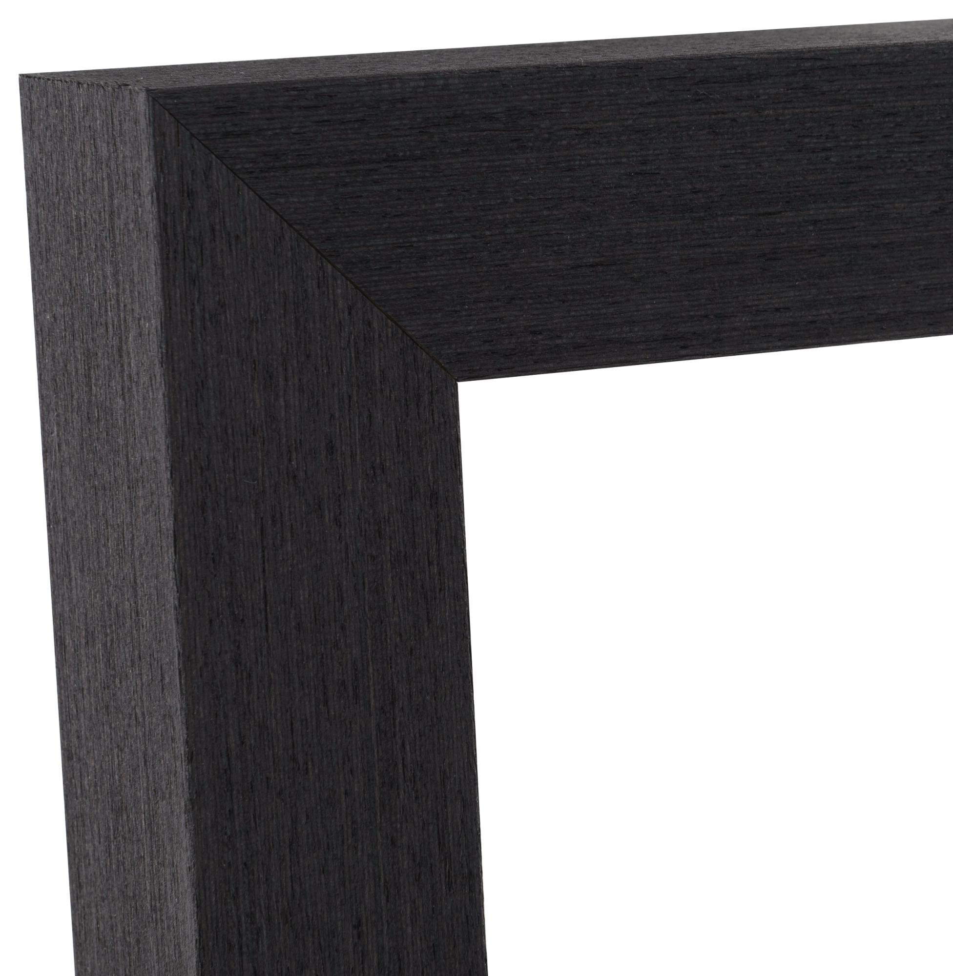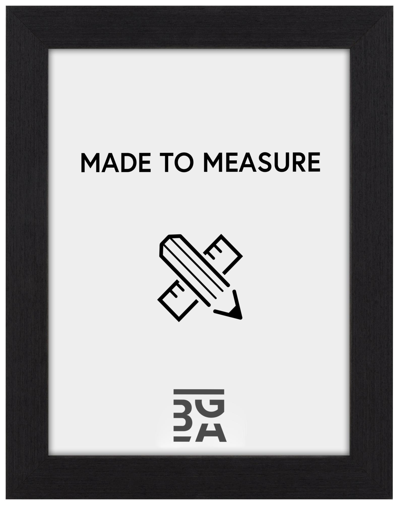 Ce cadre sur mesure est fabriqué dans notre propre atelier, ce qui signifie que vous pouvez l'obtenir exactement dans la taille que vous souhaitez. La baguette du cadre mesure 39 mm de large et a une profondeur de 52 mm, ce qui procure une sensation stable et robuste. Fabriqué en pin, ce cadre offre à la fois durabilité et beauté naturelle qui complètent son élégante finition noire.