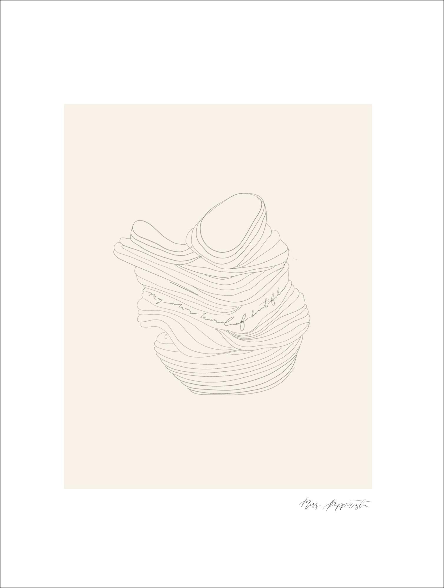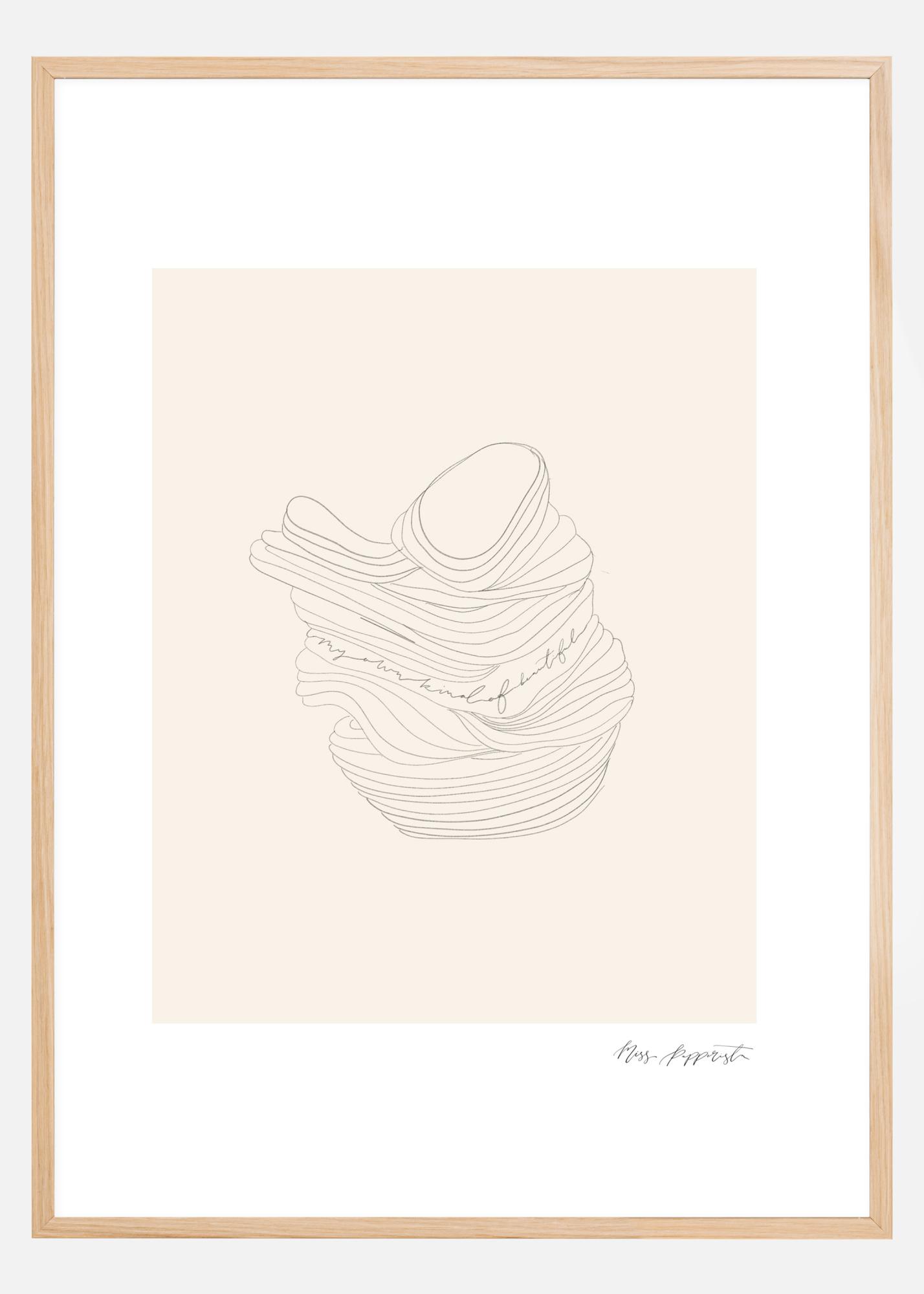 Une affiche intéressante d'objets empilés. Sur un fond beige, l'œil se dirige vers le bol nervuré de l'imprimé. Un poster idéal pour engager la conversation. Accrochez ce dessin dans votre salon pour découvrir ce que sont les objets empilés.