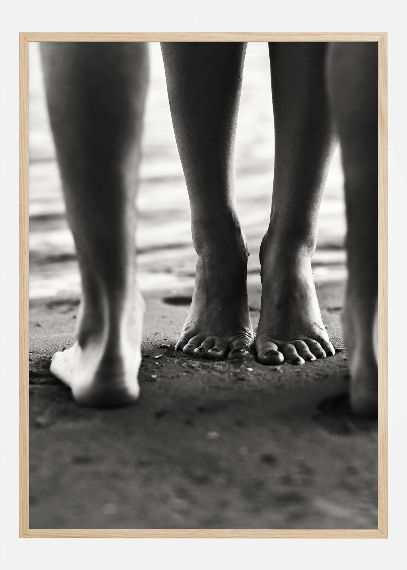 Une affiche romantique d'une impression en noir et blanc en gros plan de quatre jambes prises sur une plage. L'image est composée de deux personnes qui se font face. Concentrez-vous sur le personnage qui se tient sur la pointe des pieds. Ce magnifique tirage donne une impression de romantisme. Accrochez cette affiche dans votre chambre à coucher pour une touche de romantisme.
