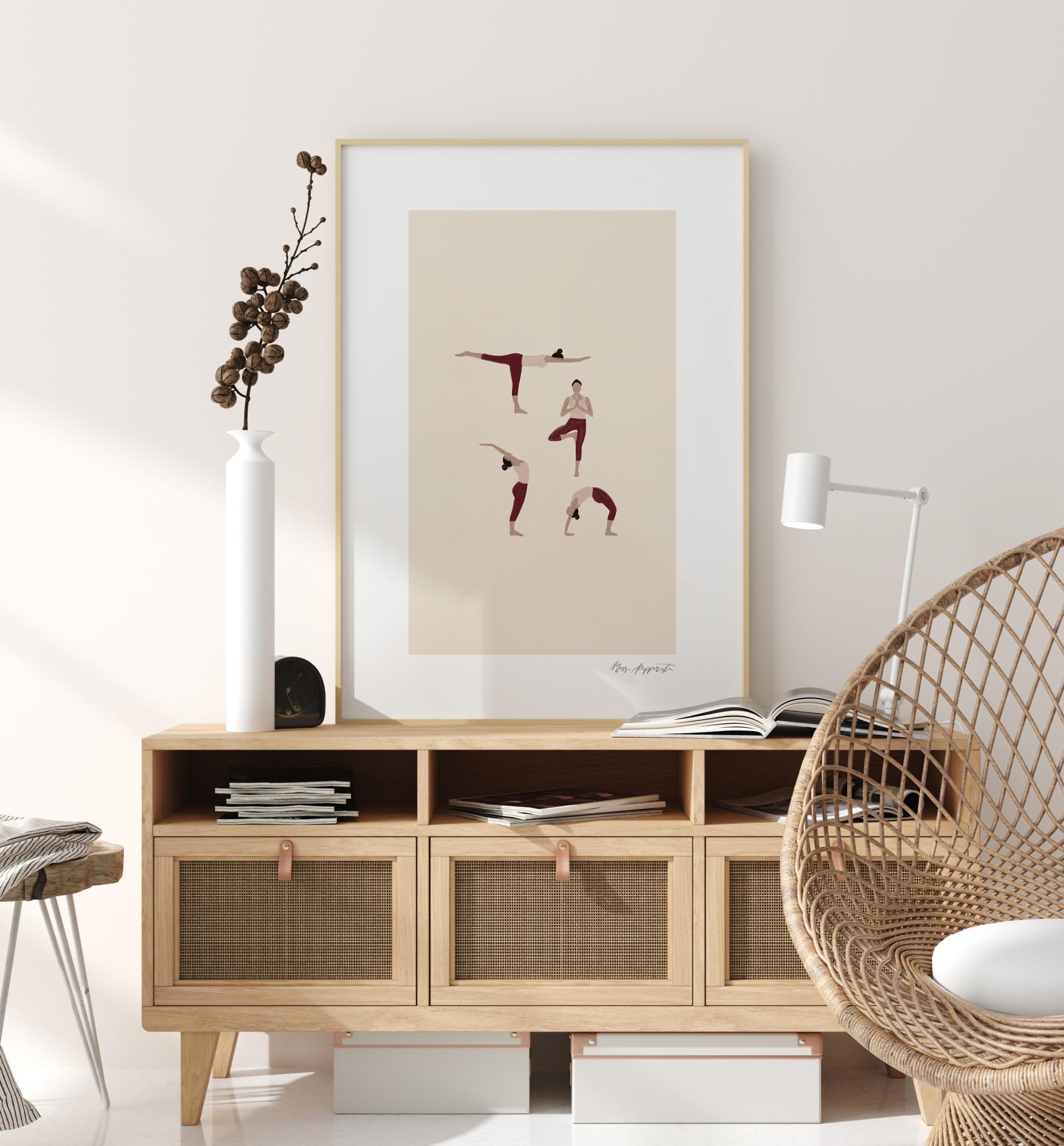 Un poster informatif dans de belles pastels illustrant quatre différentes postures de yoga. Une affiche simple et épurée, créée par Miss Papperista. Associez-la volontiers avec les posters Namaste et Namaste II de Miss Papperista pour un collage sur le même thème.